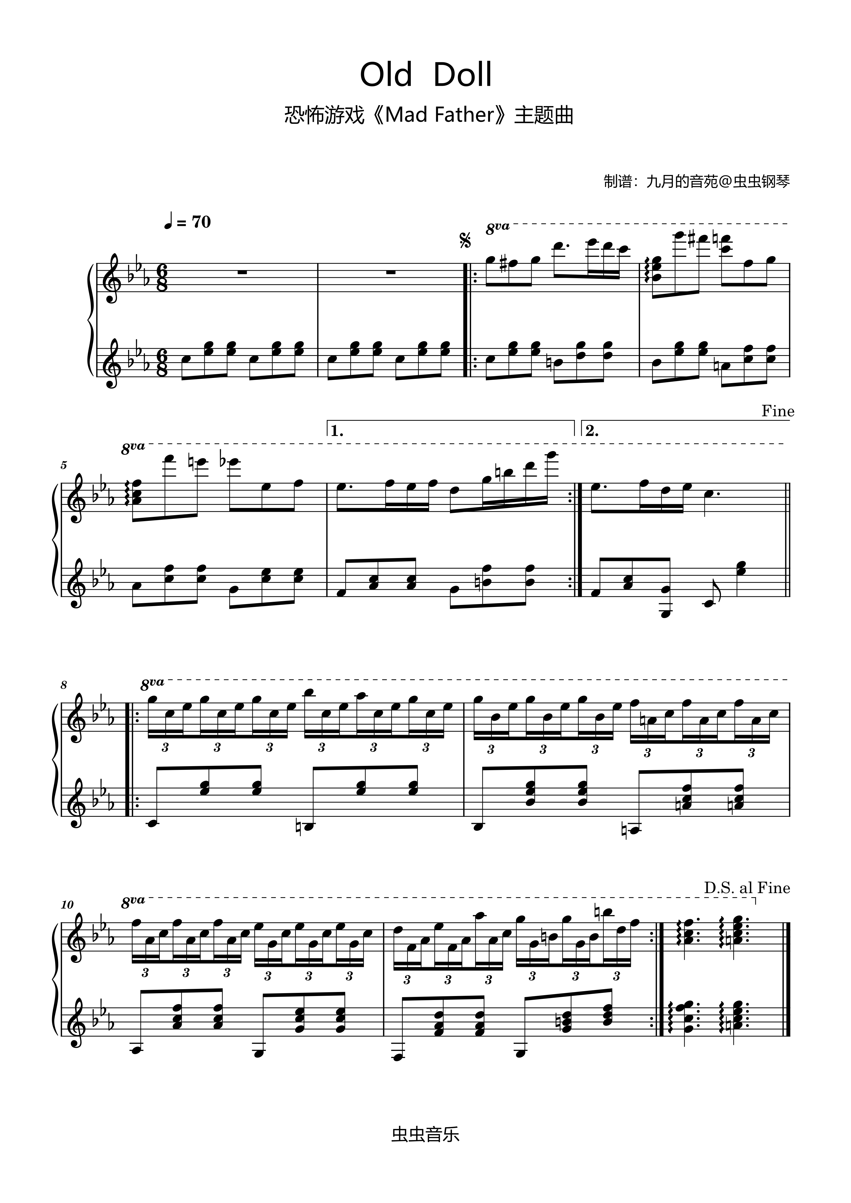 钢琴谱:【Old Doll】超恐怖BGM(恐怖游戏《狂父》主题曲)