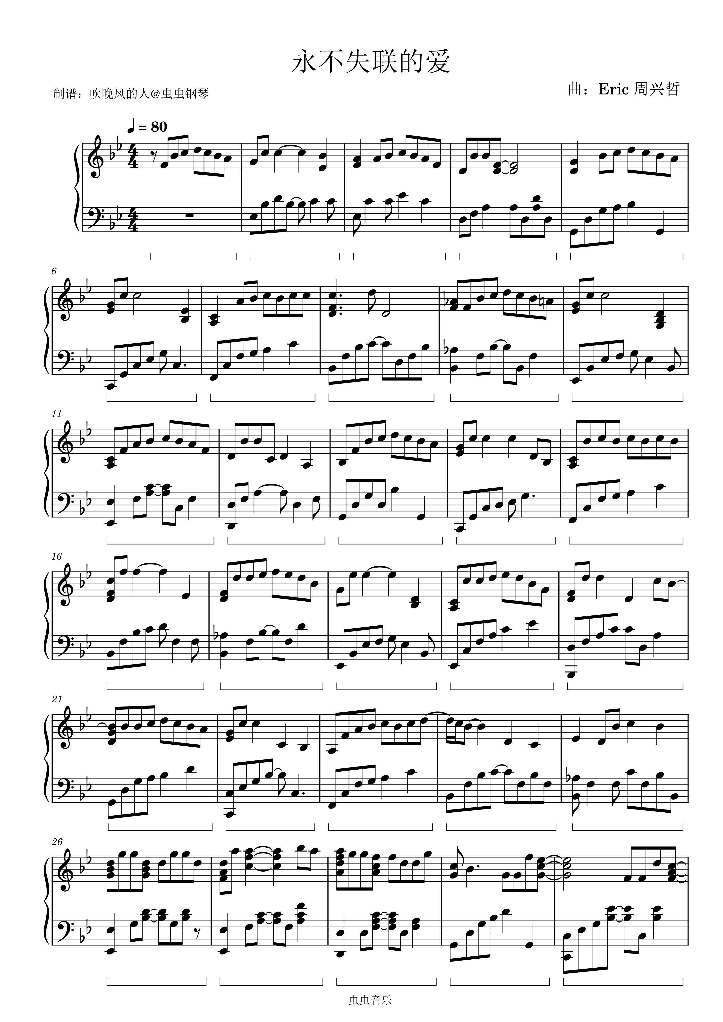 钢琴谱:周兴哲《永不失联的爱》降B大调独奏版