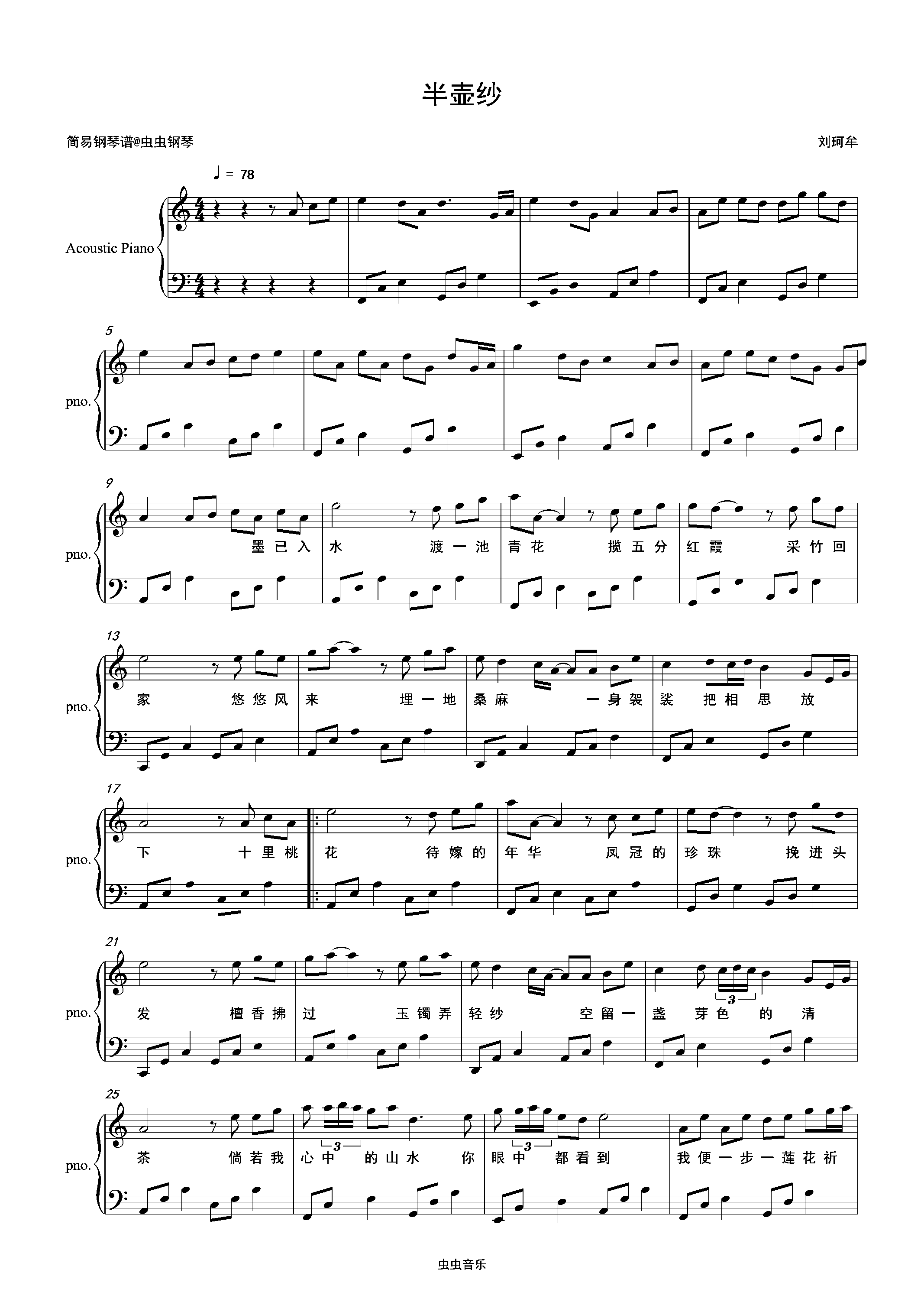 钢琴谱:半壶纱-刘珂牟 C调独奏