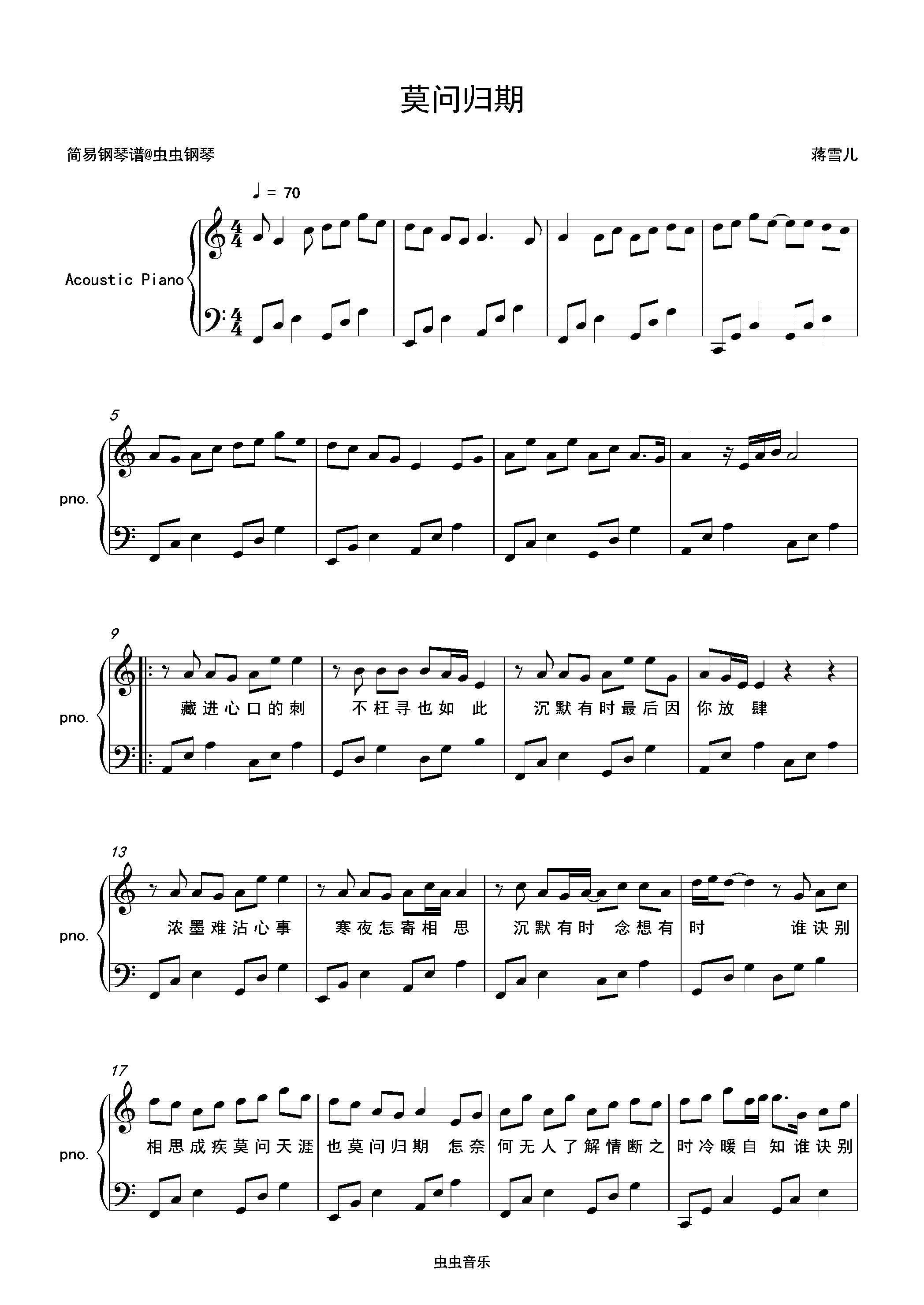 钢琴谱:莫问归期-蒋雪儿 C调独奏