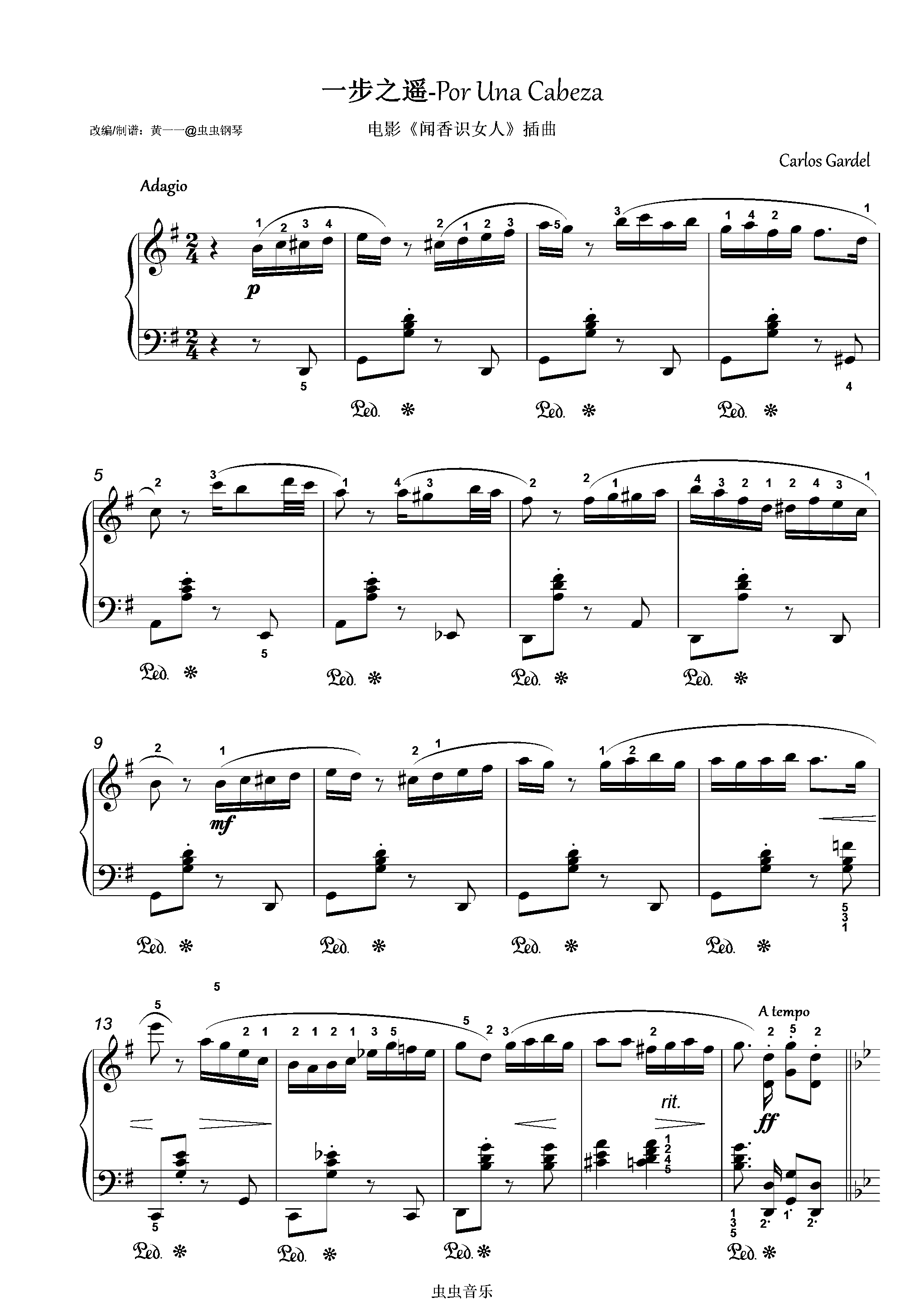 • Por Una Cabeza 一步之遥钢琴简谱 G调 数字双手 Carlos Gardel