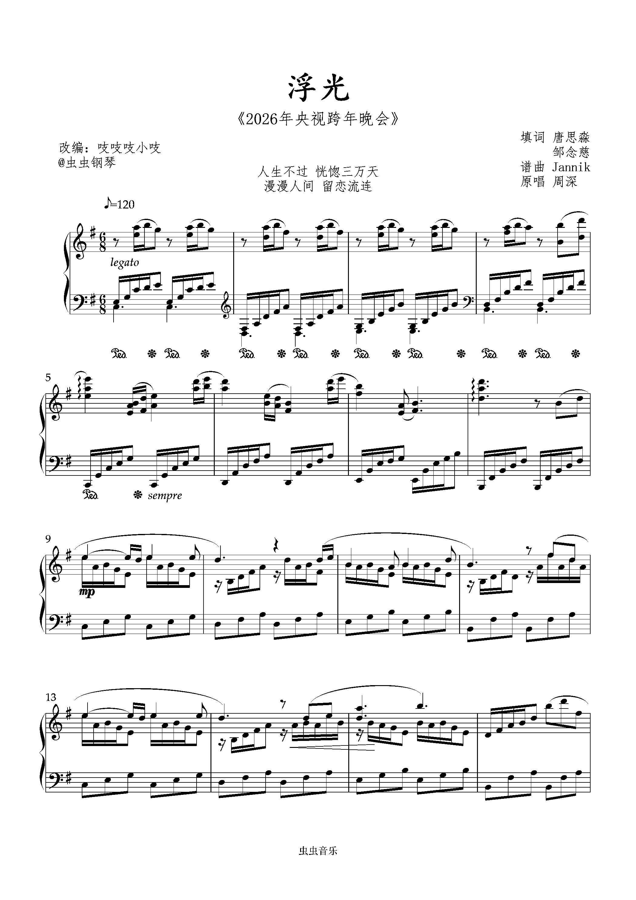 钢琴谱:浮光 「空灵、恢弘」周深 e小调演奏 跨年晚会 吱吱编配