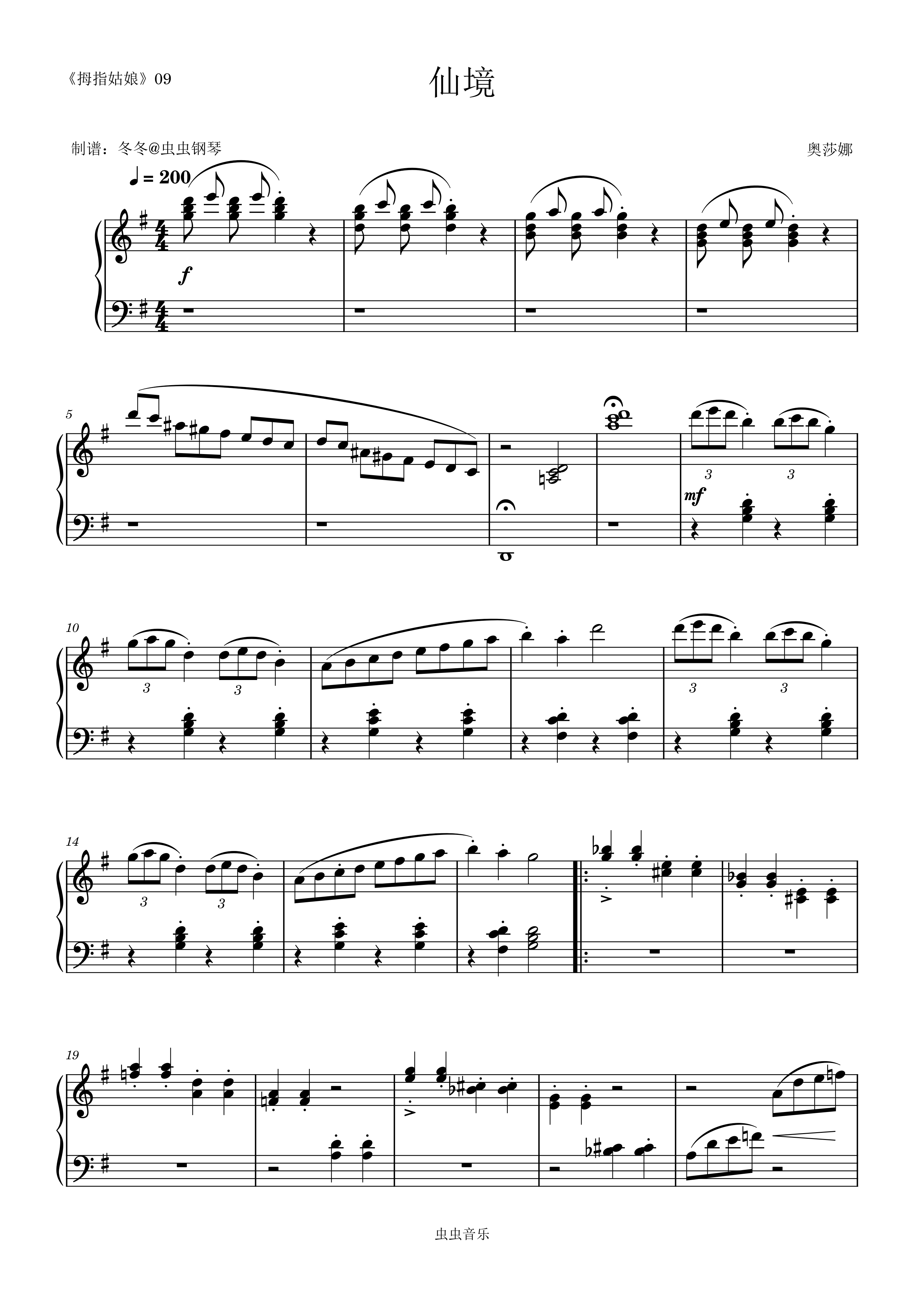 • 安妮的仙境钢琴简谱 F#调 数字双手