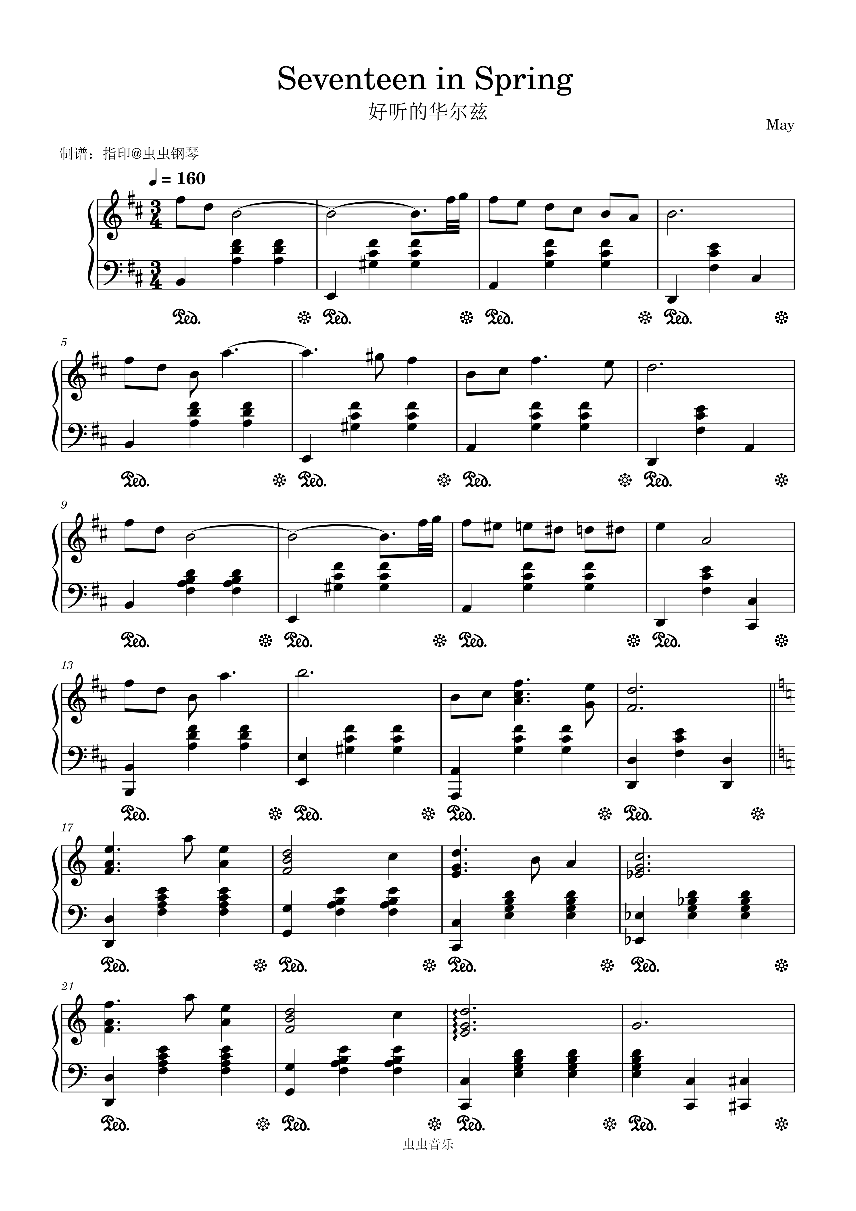 钢琴谱:好听的华尔兹《Seventeen in Spring》