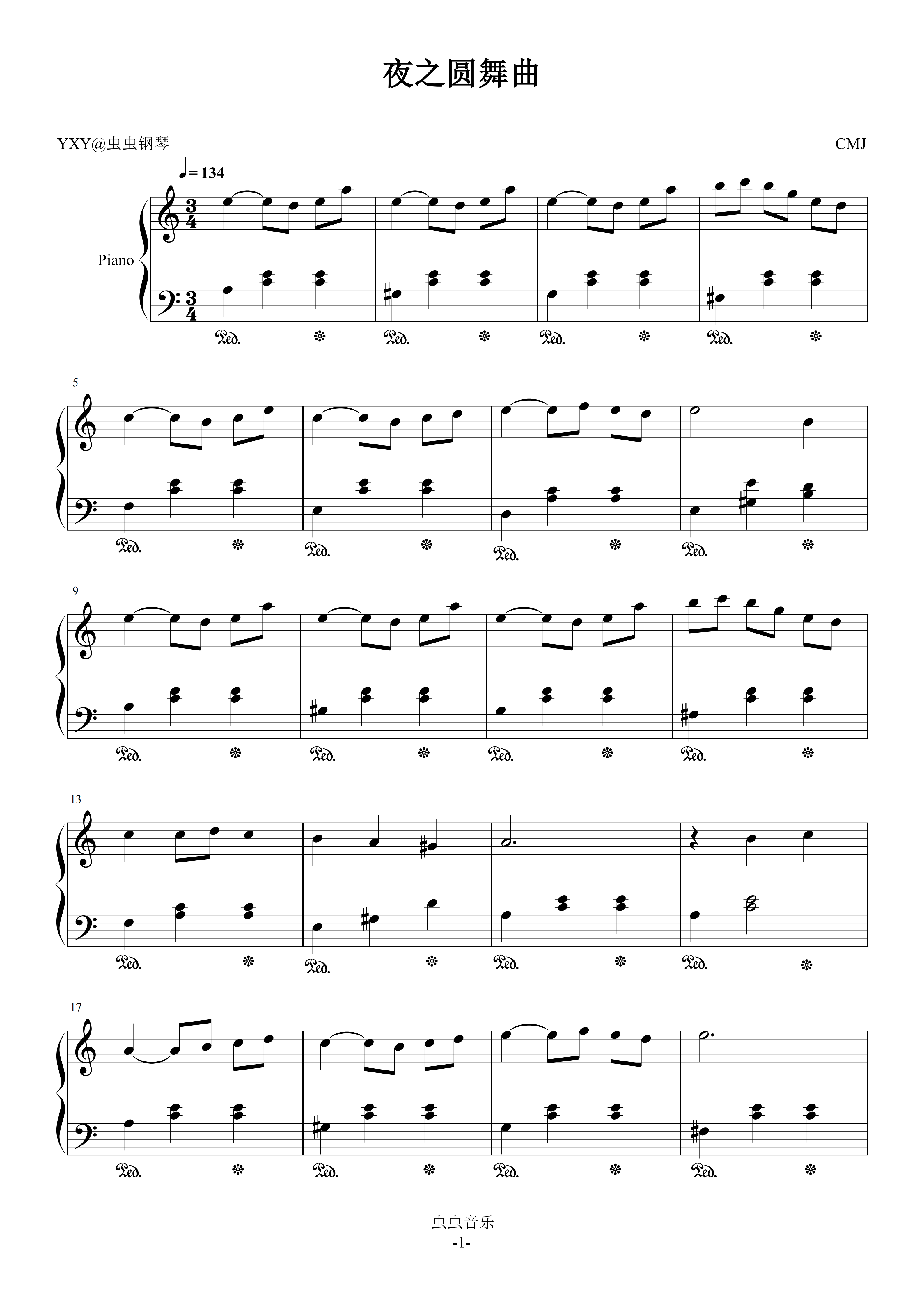 夜之圆舞曲(C调-改调前)
