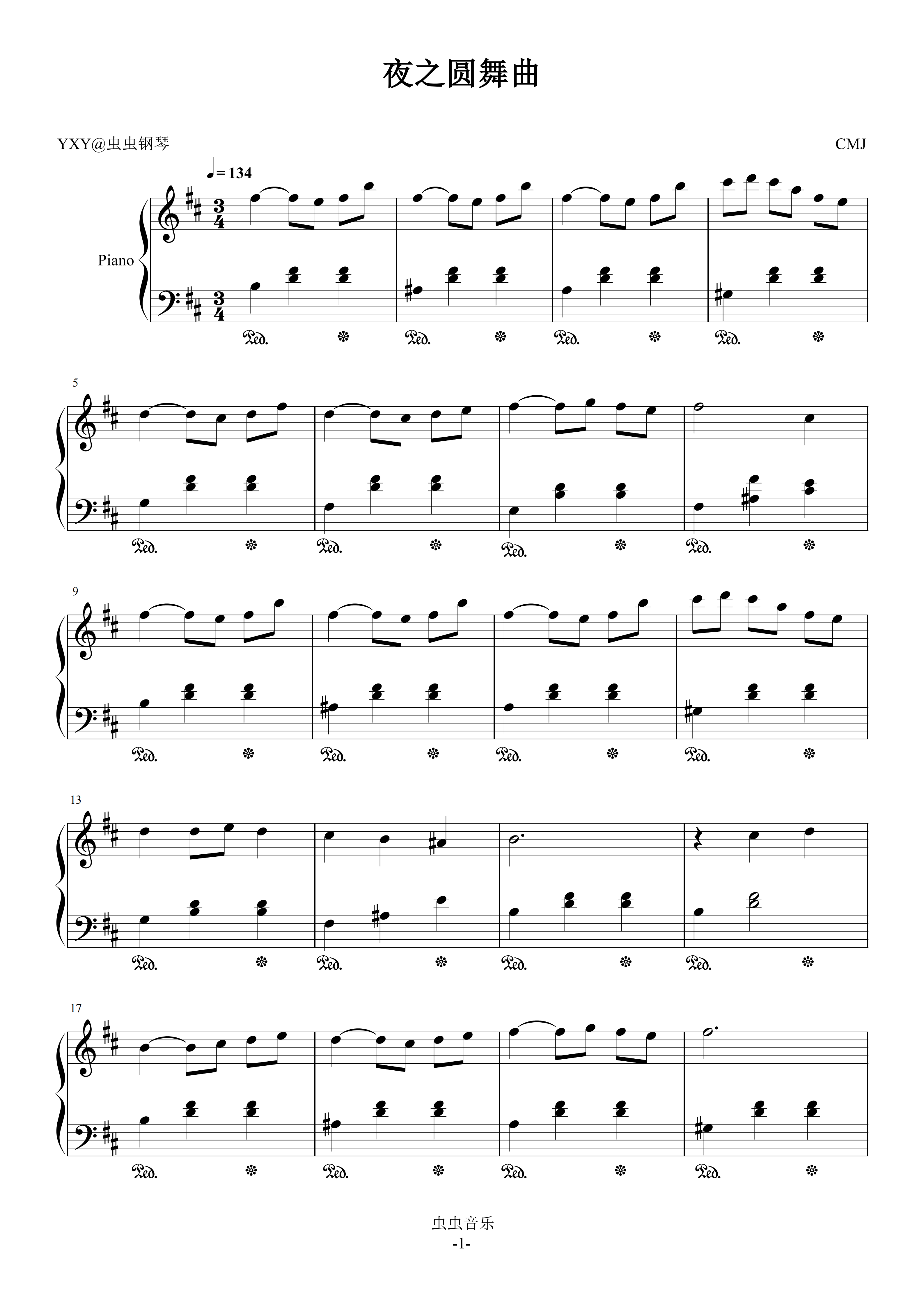 钢琴谱:夜之圆舞曲(总升降号最少版)