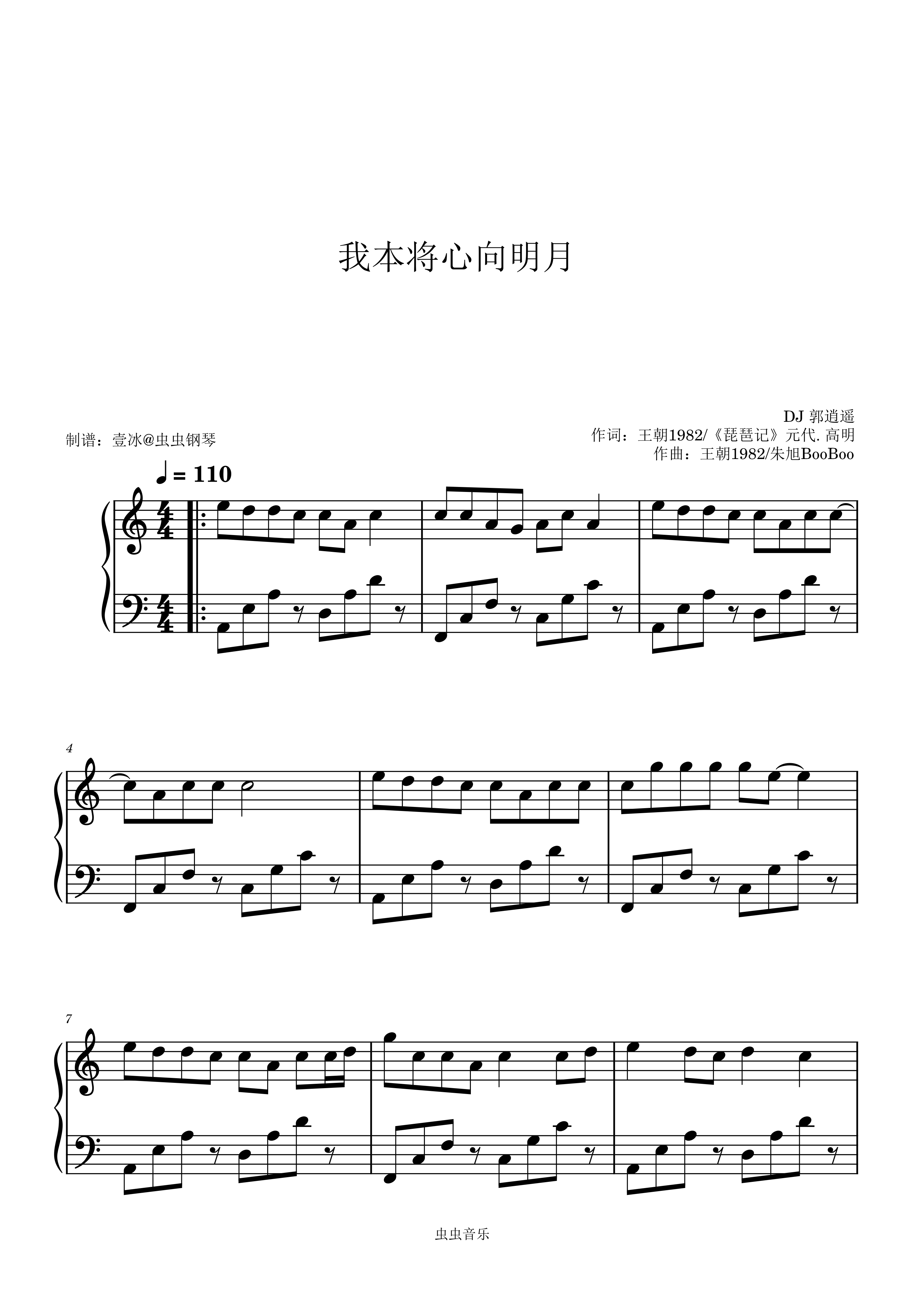 钢琴谱:我本将心向明月-DJ 郭逍遥 C调
