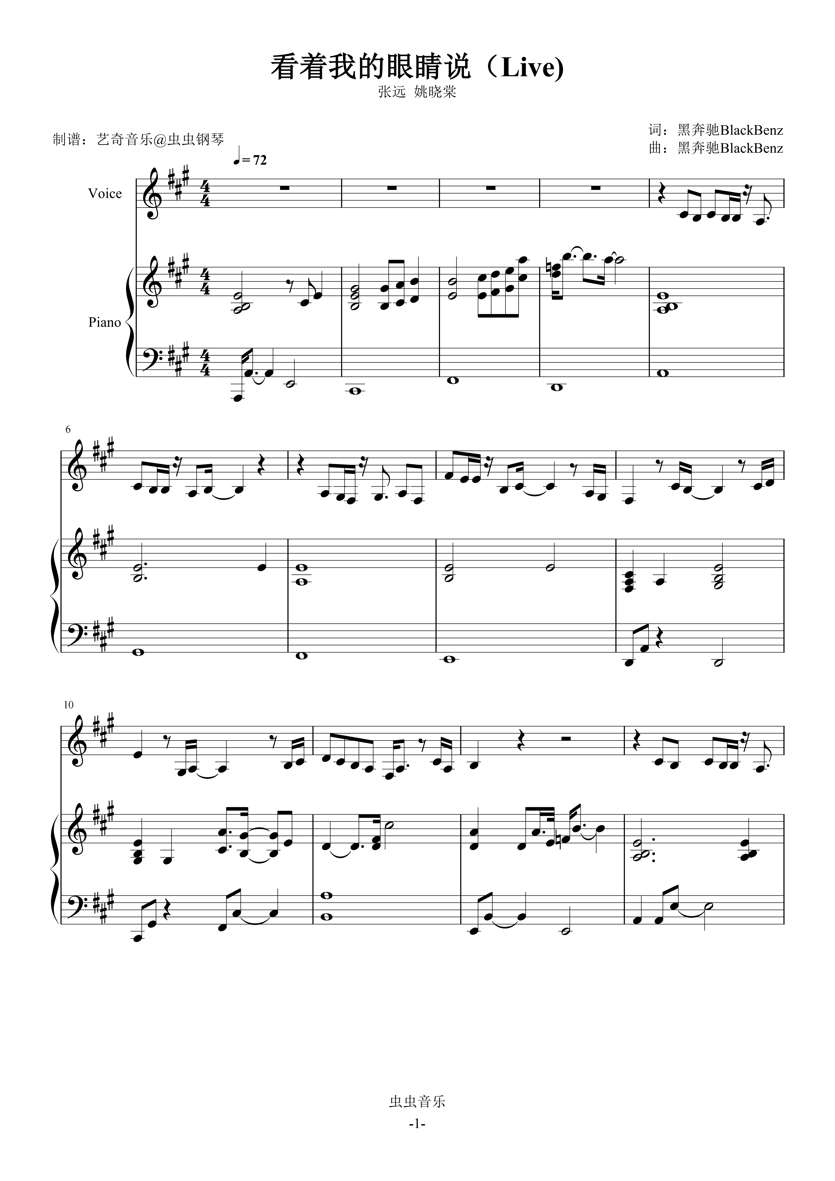看着我的眼睛说钢琴简谱 数字双手 黑奔驰BlackBenz