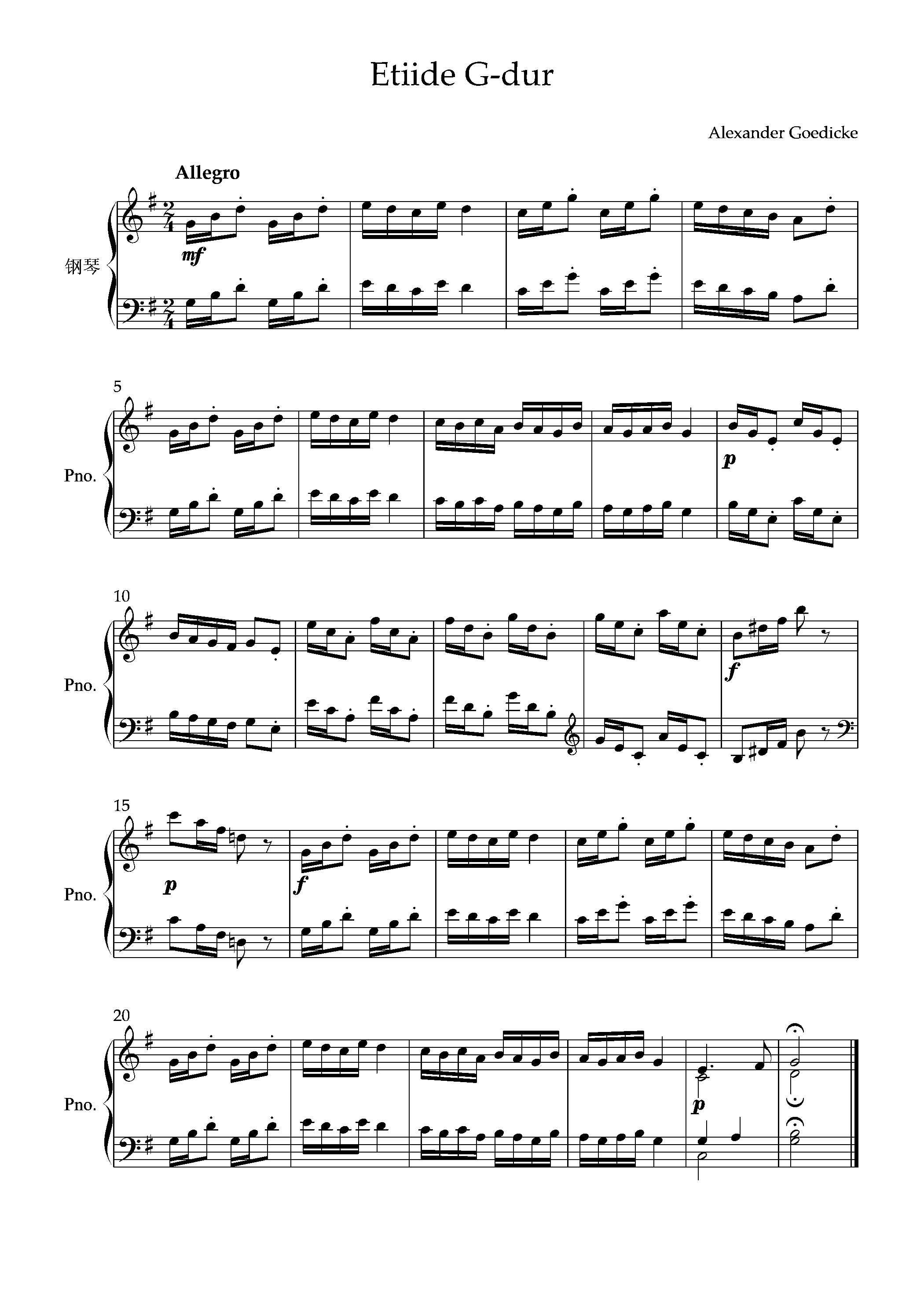 Etiide G-dur钢琴简谱 数字双手