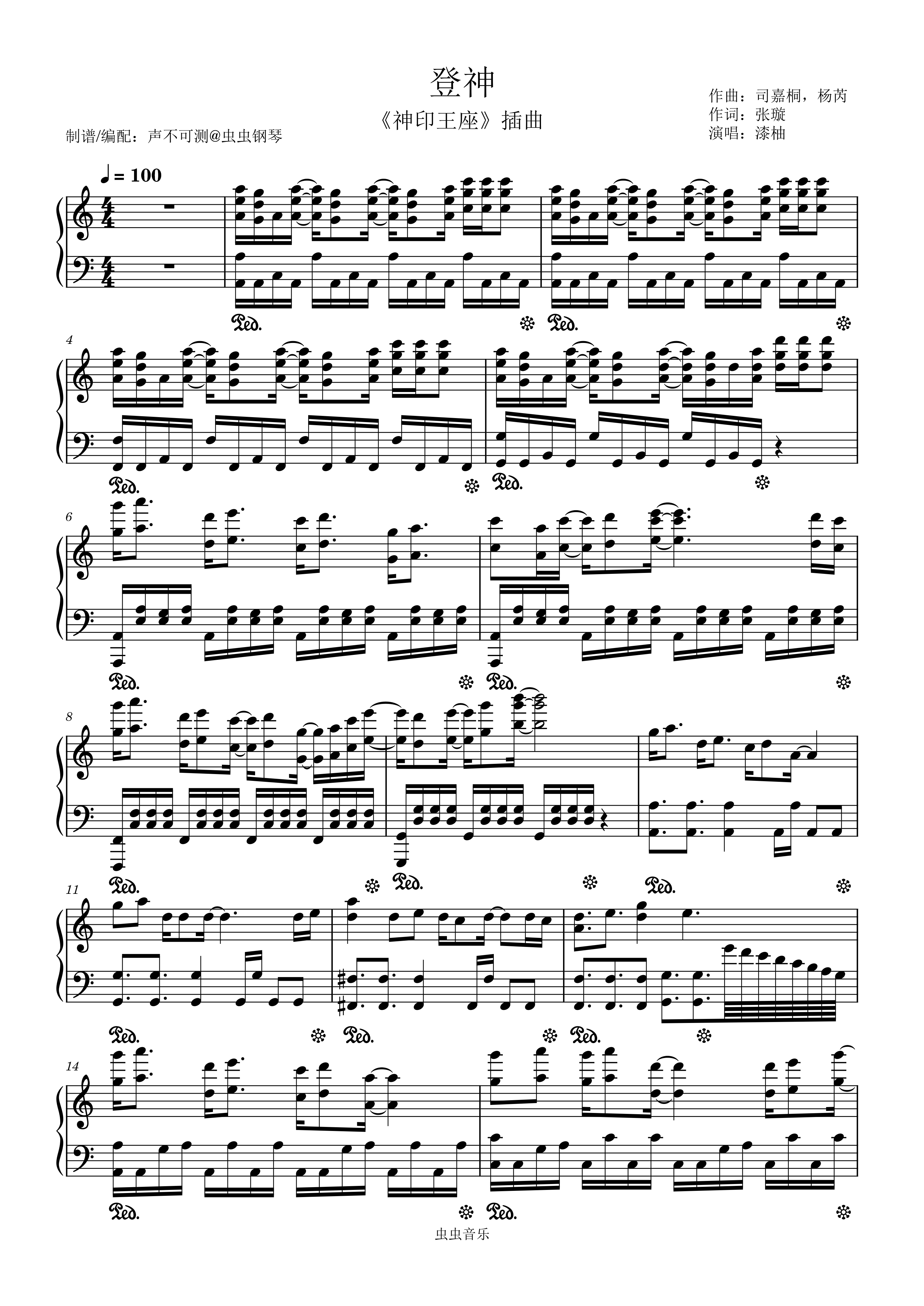 钢琴谱:登神《神印王座》插曲高度还原 - 声不可测