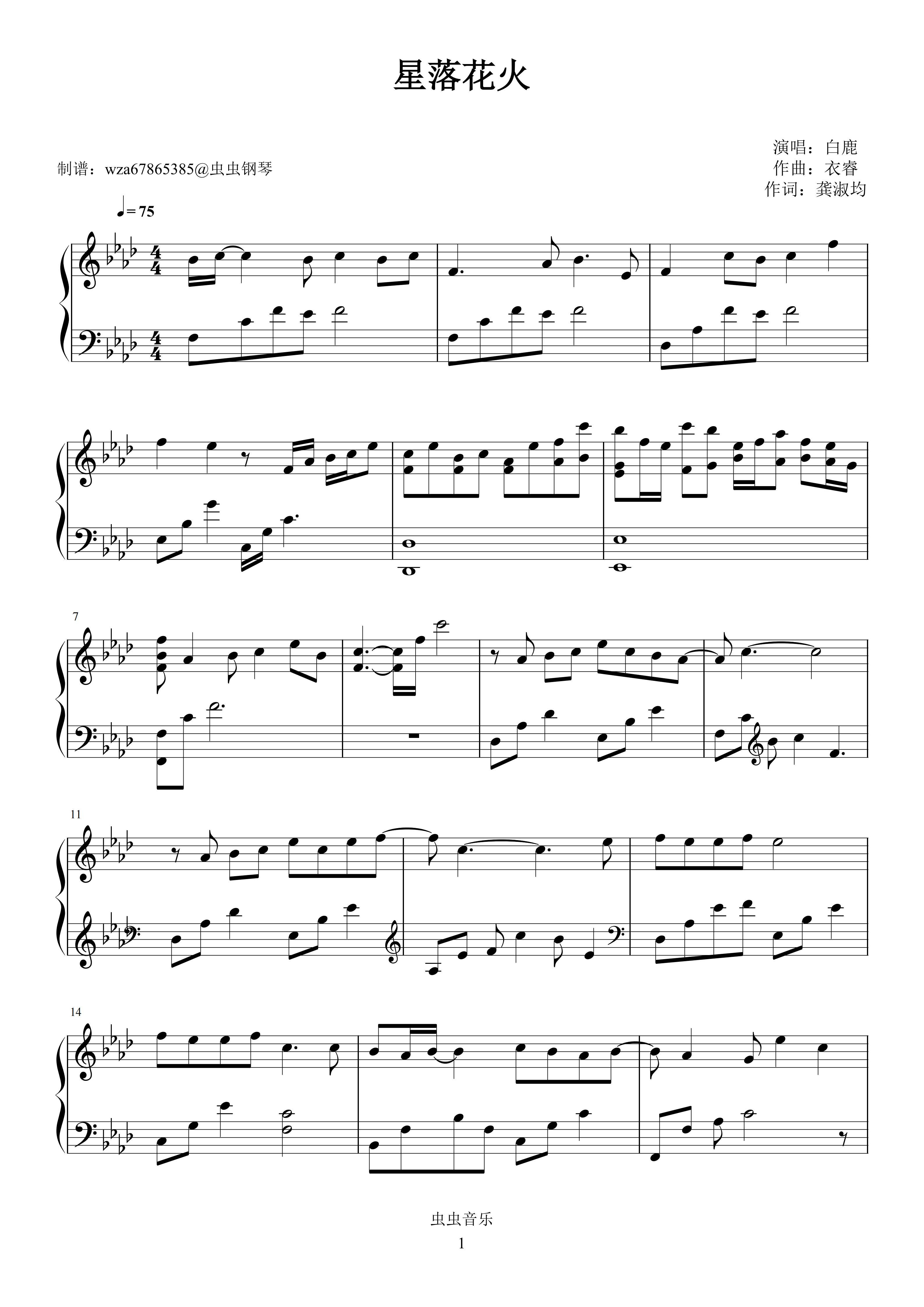 • 星の在り処钢琴简谱 c#调 数字双手 浜田英明