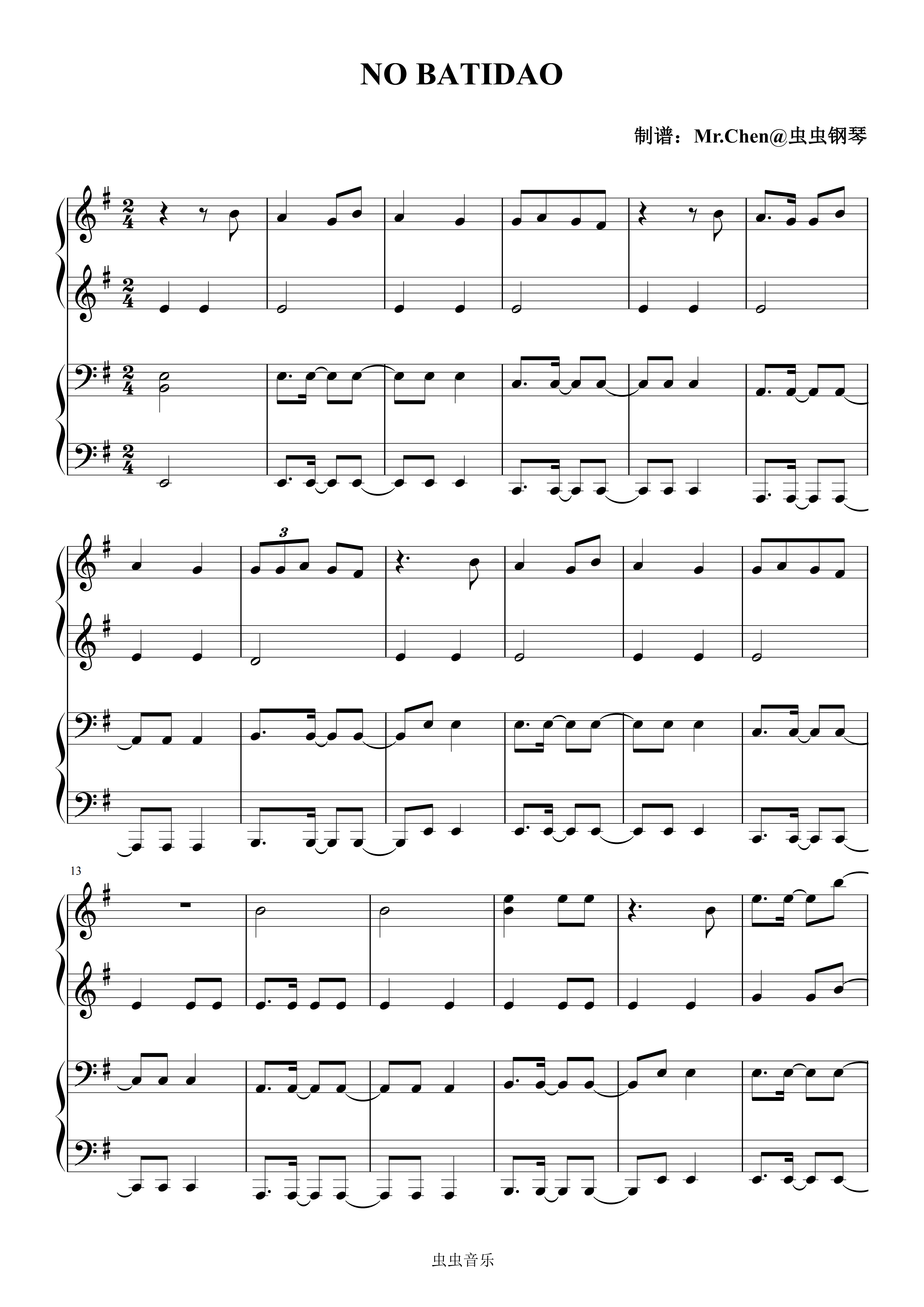 钢琴谱:NO BATLDAO (四手联弹)G调 - 卡点の小曲