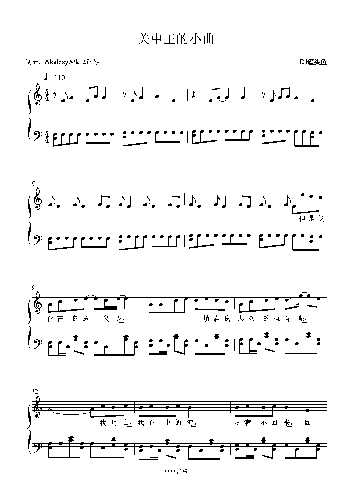 钢琴谱:关中王小曲(弹唱版)