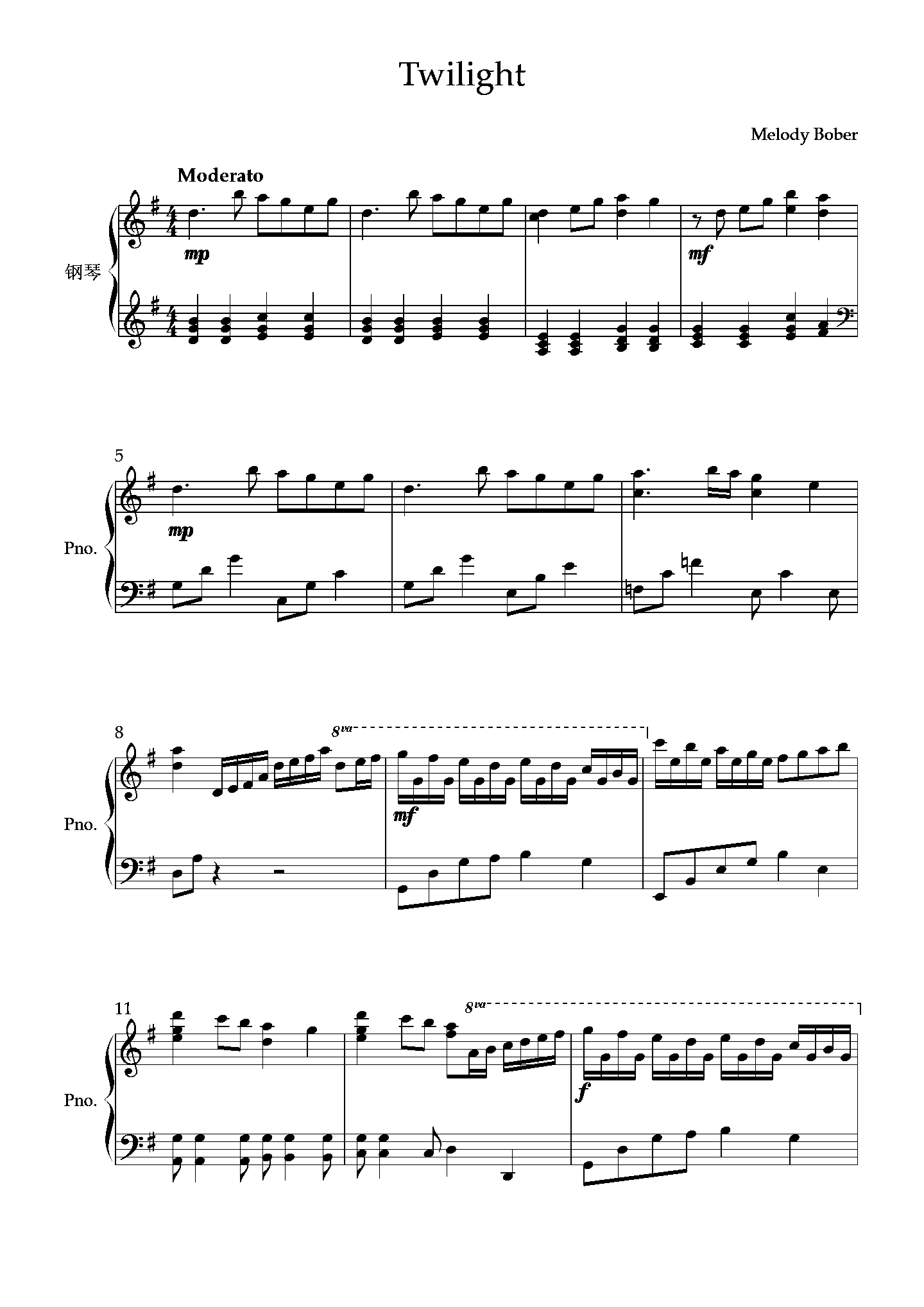 • Twilight钢琴简谱 C调 数字双手