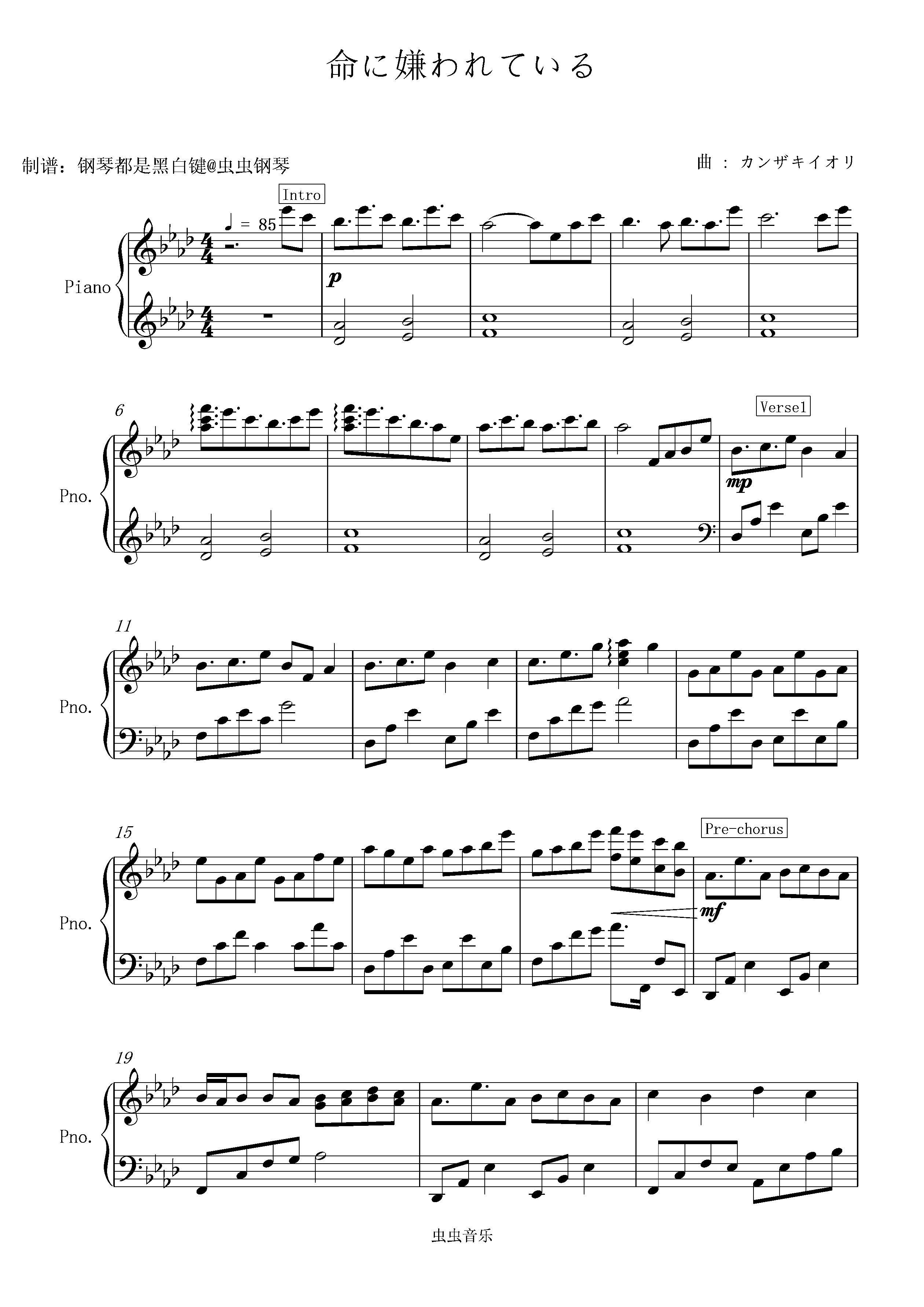 命に嫌われている。钢琴简谱 数字双手 カンザキイオリ
