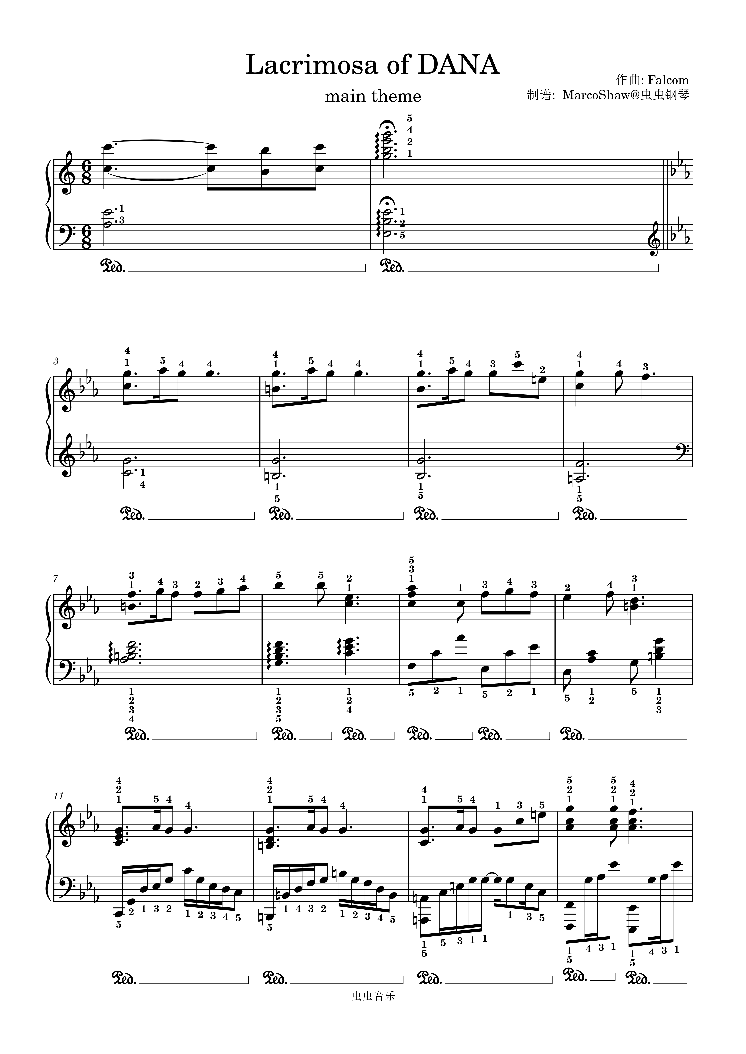 • LACRIMOSA OF DANA钢琴简谱 c调 数字双手