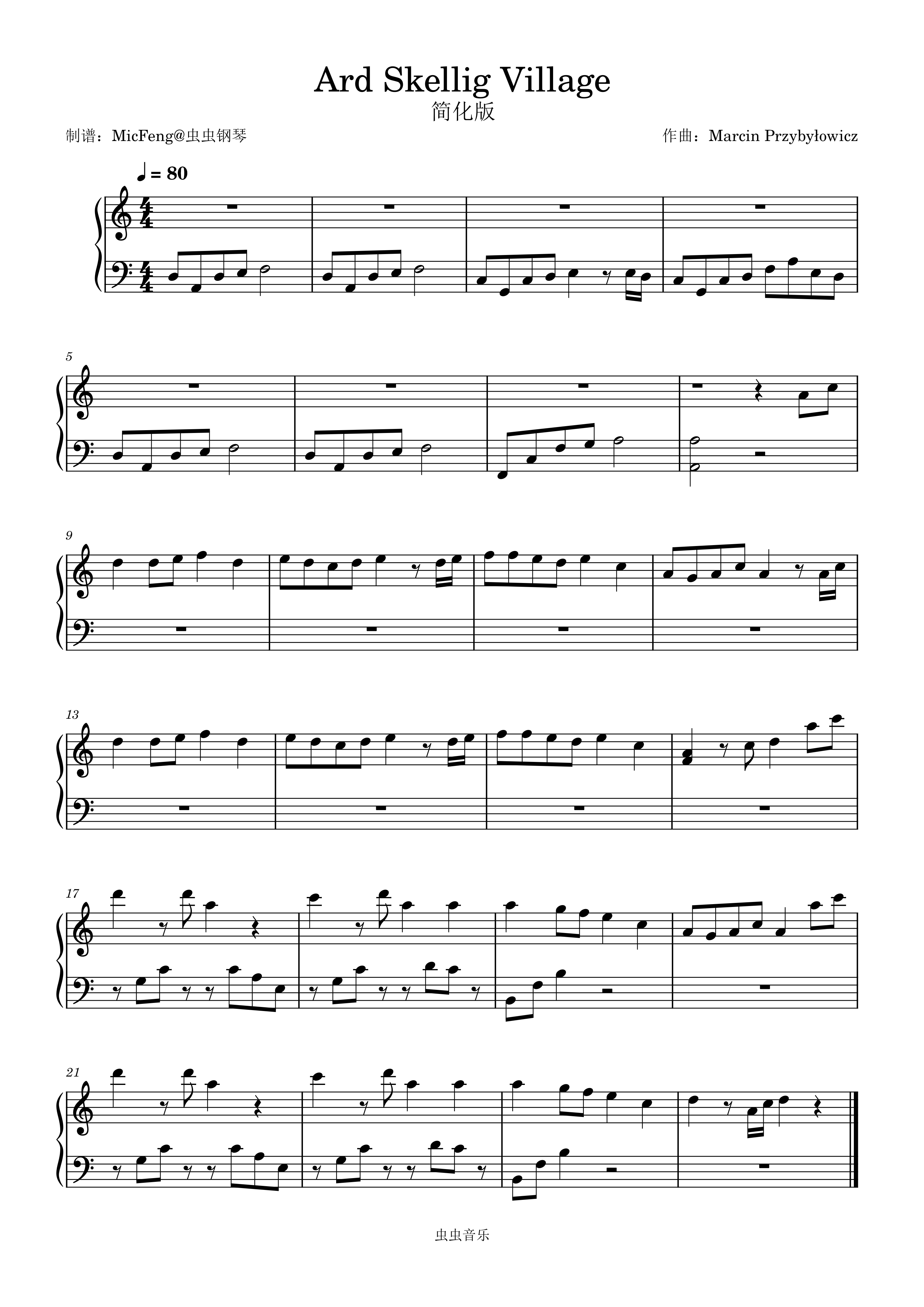 • Ard Skellig Village钢琴简谱 F调 数字双手