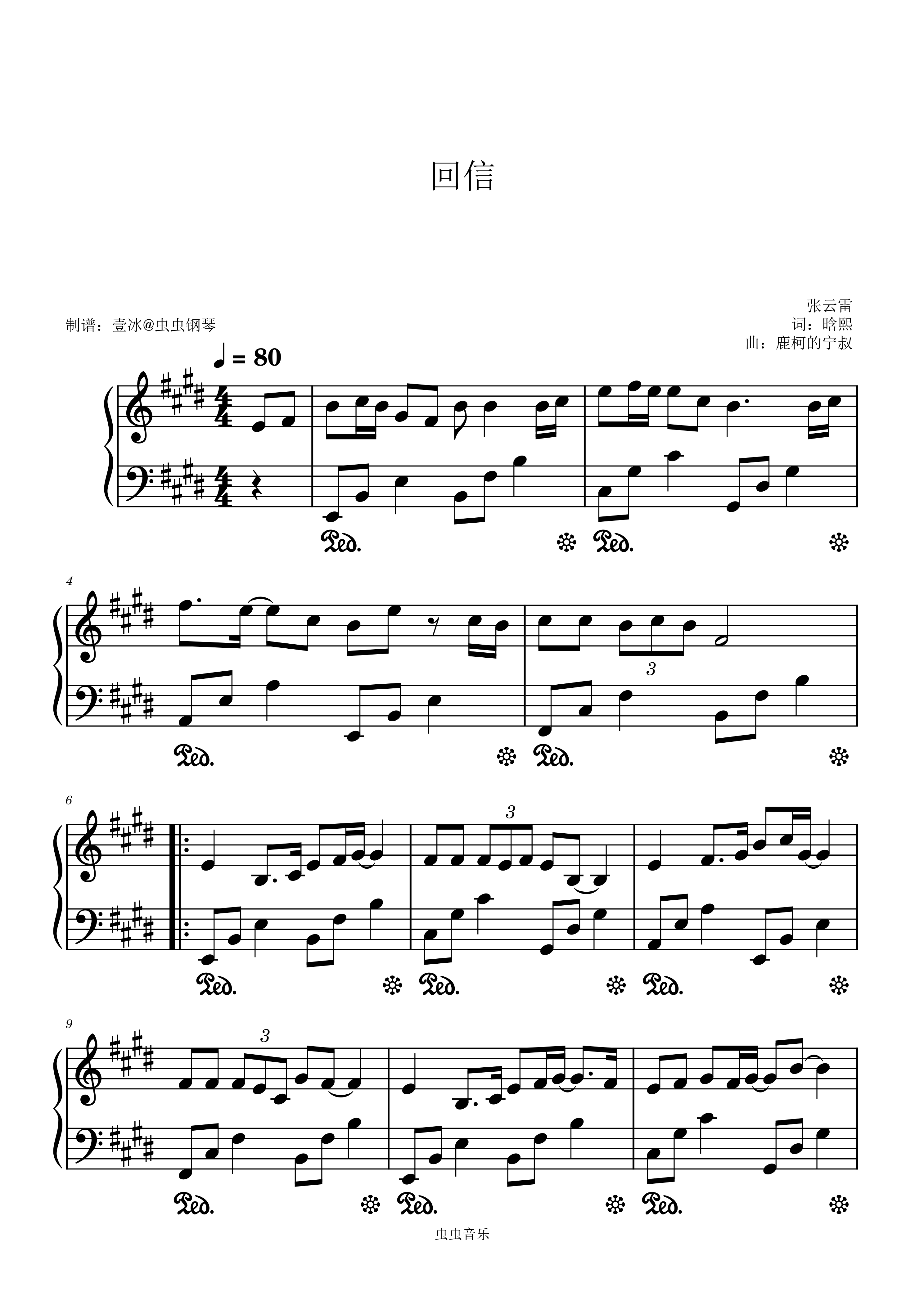 钢琴谱:回信 - 张云雷 原调
