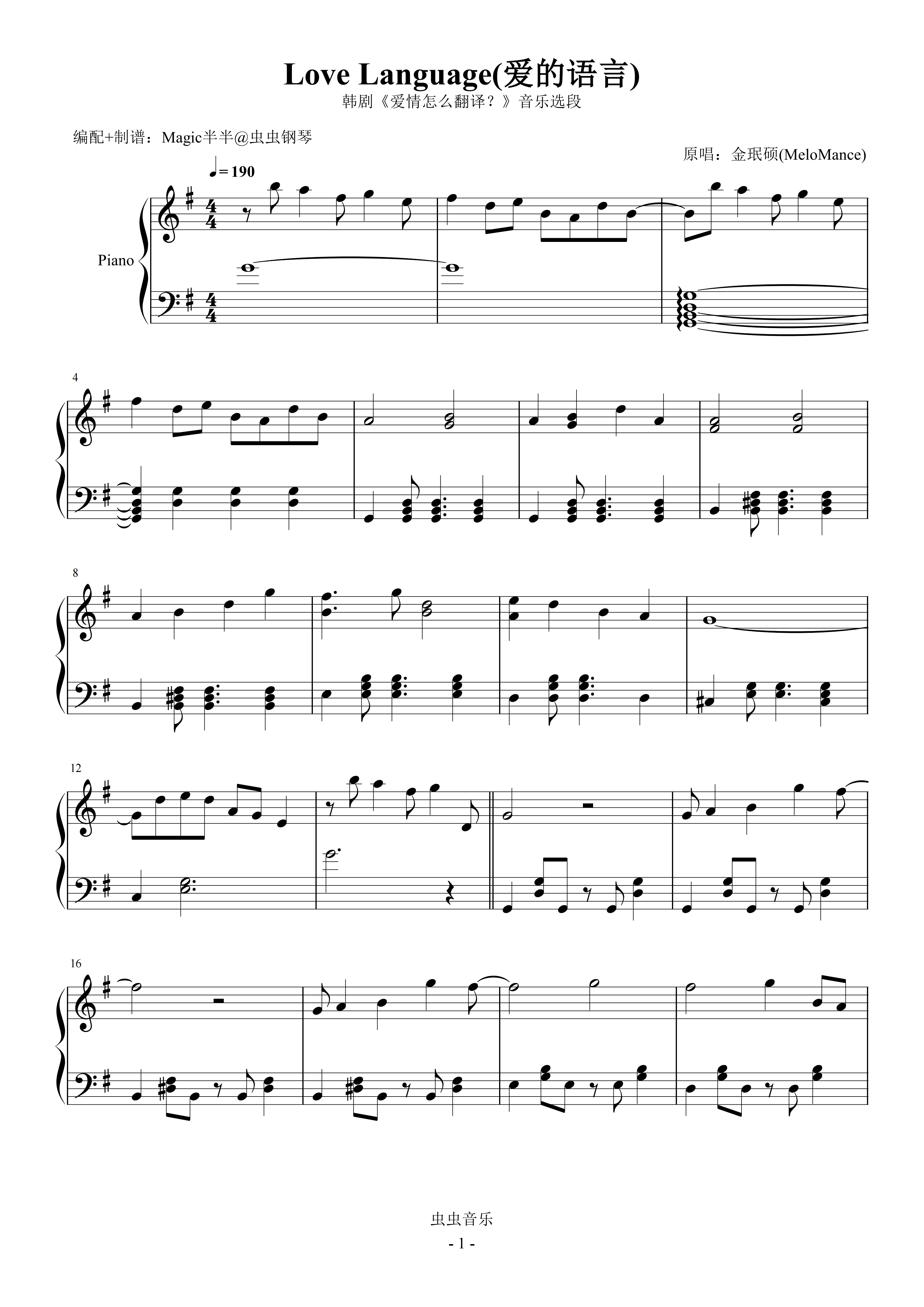 钢琴谱:Love Language(跃动完整版/独奏G) <爱情怎么翻译?>韩剧音乐