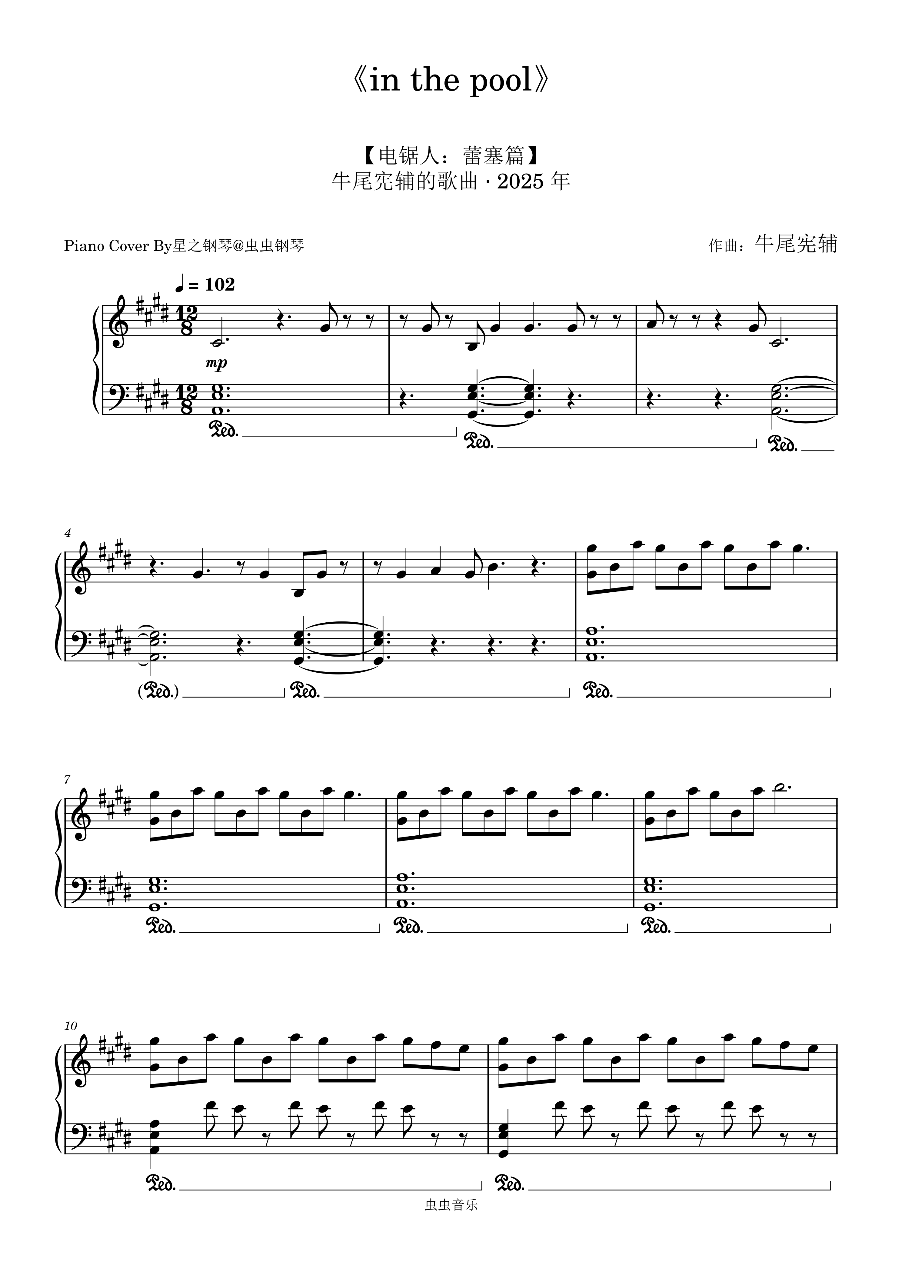 钢琴谱:【电锯人:蕾赛篇】《in the pool》钢琴还原独奏谱~星之钢琴~