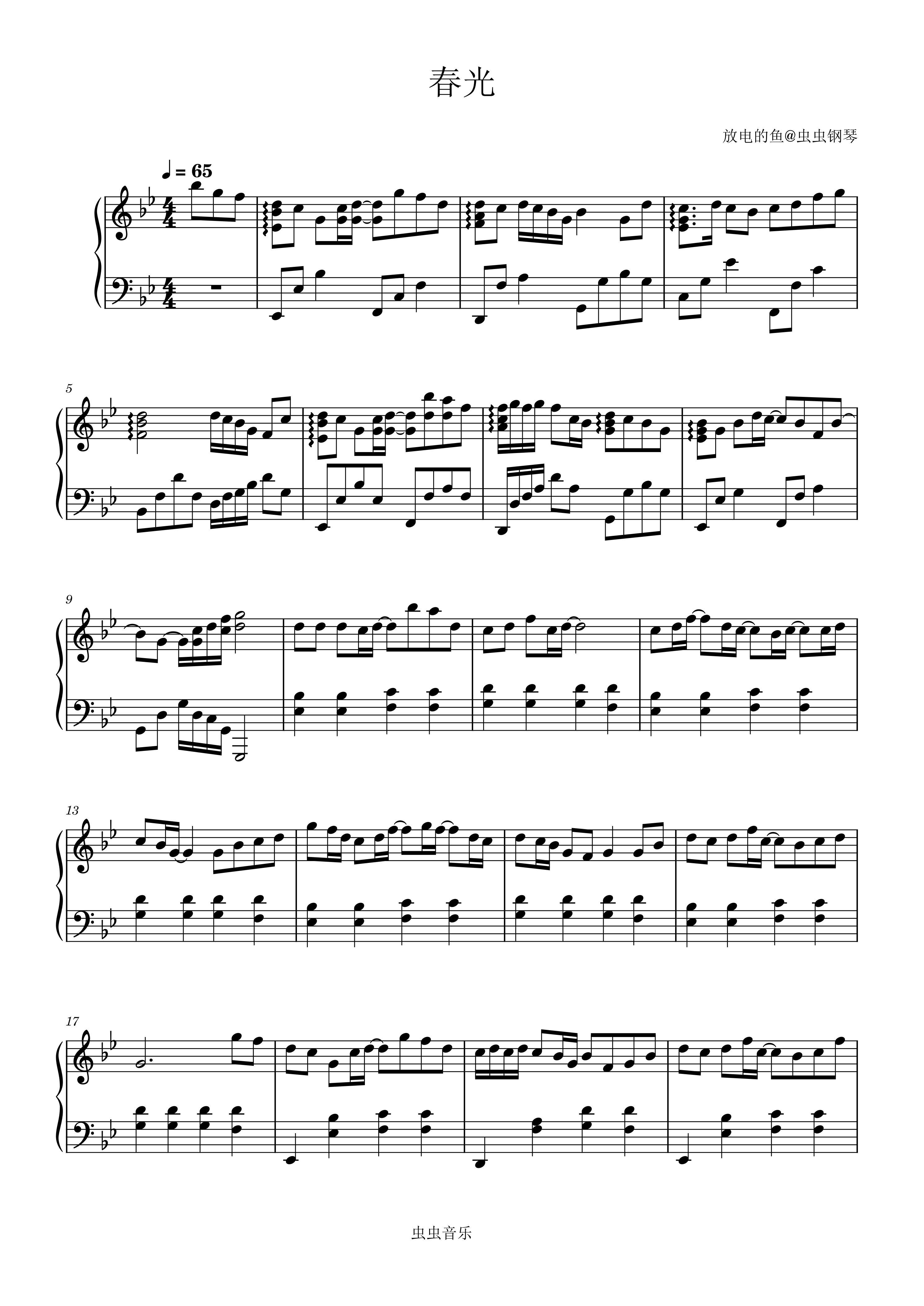 钢琴谱:春光-放电的鱼 钢琴原创