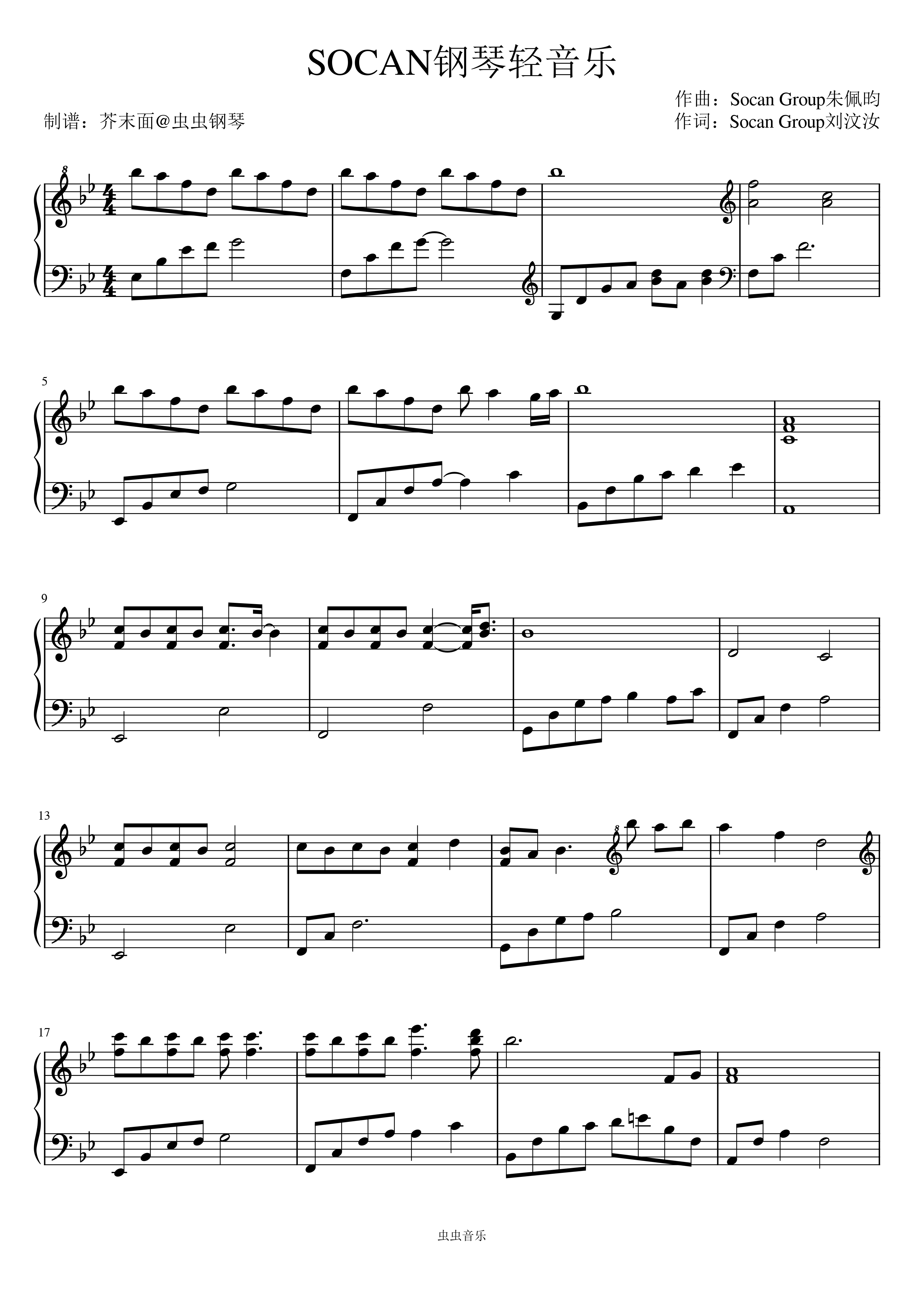 钢琴谱:SOCAN钢琴轻音乐