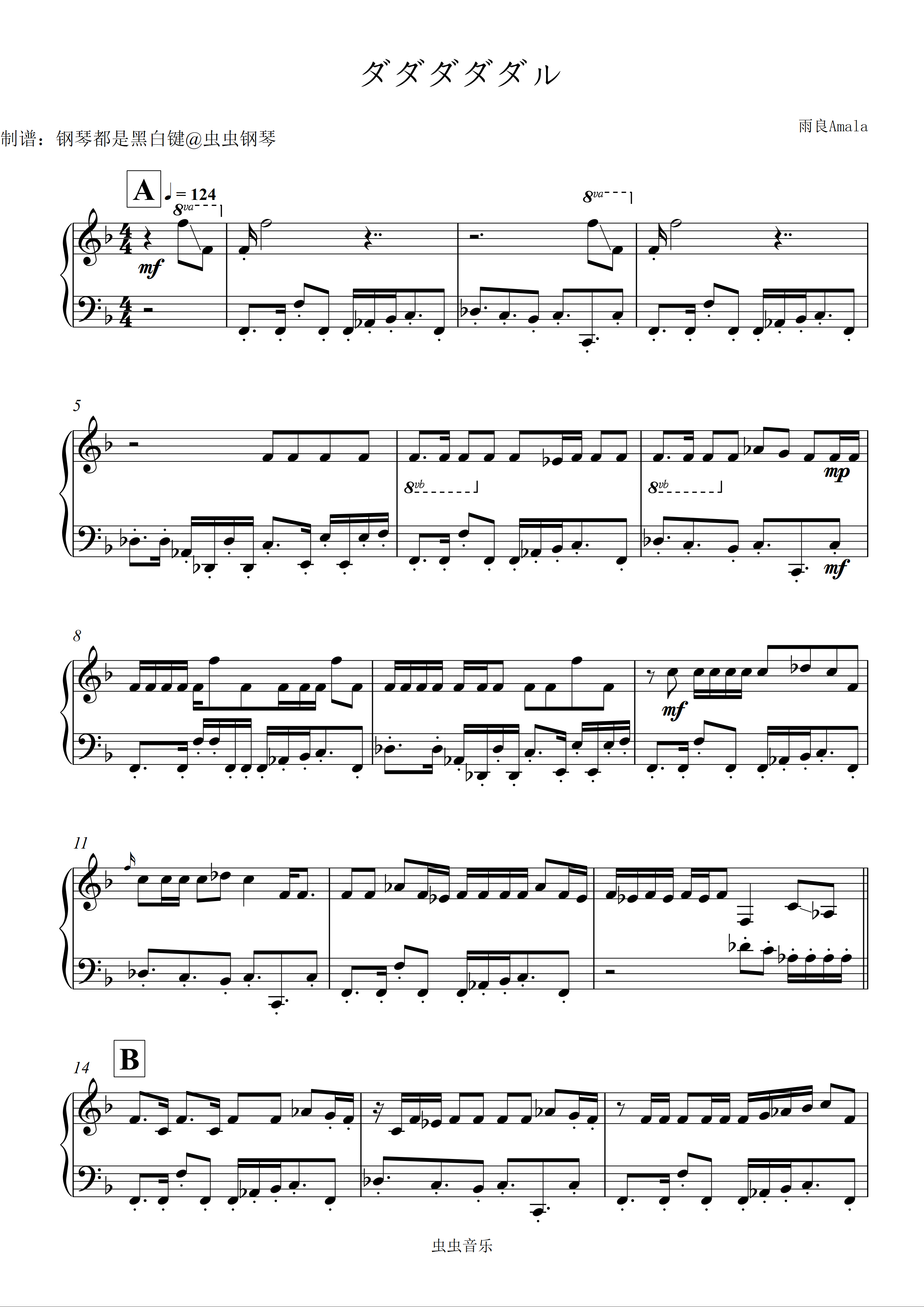 钢琴谱:【初音/重音/】ダダダダダル/烦烦烦烦烦死了