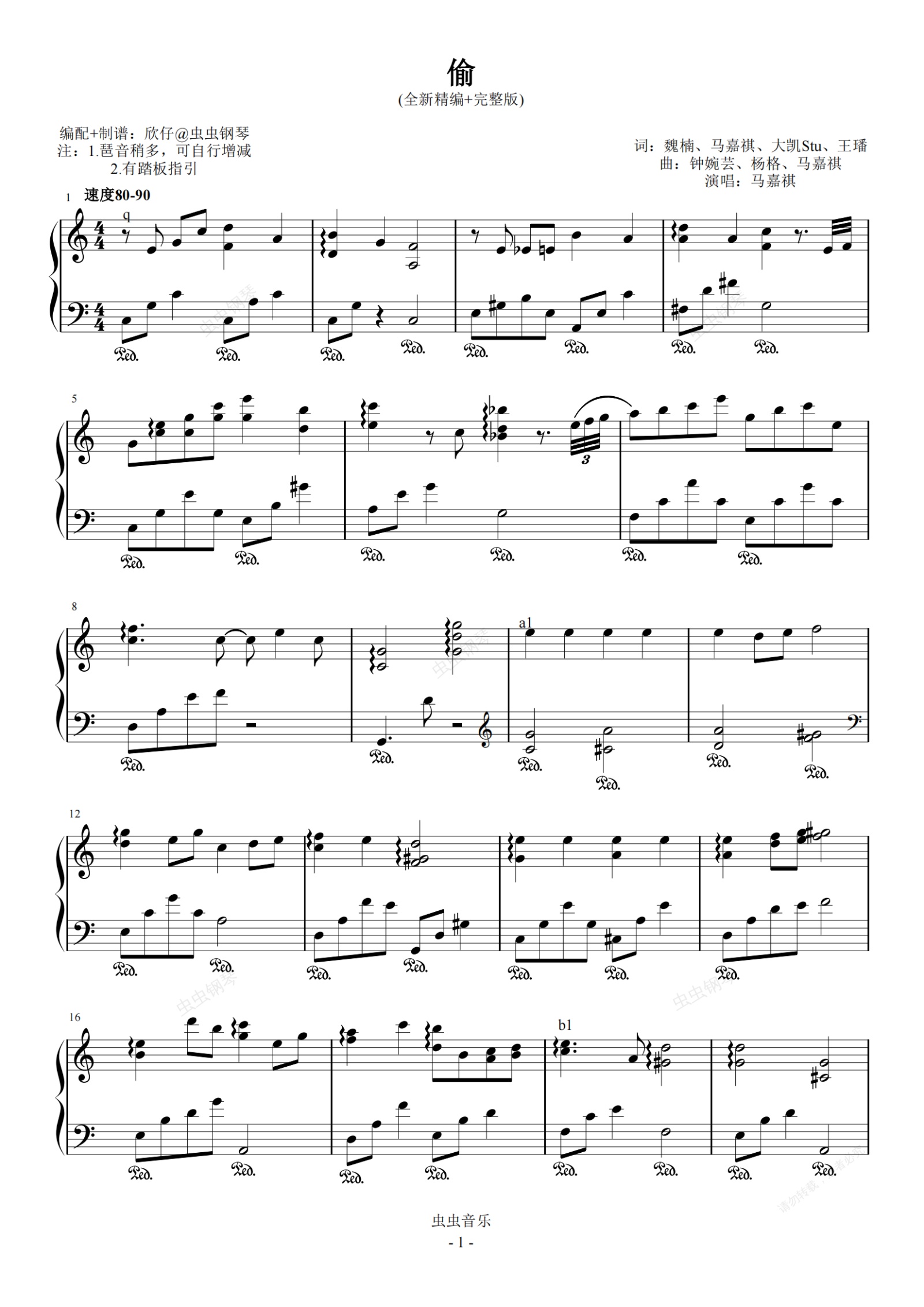钢琴谱:马嘉祺-C《偷》(全新精编+完整版)
