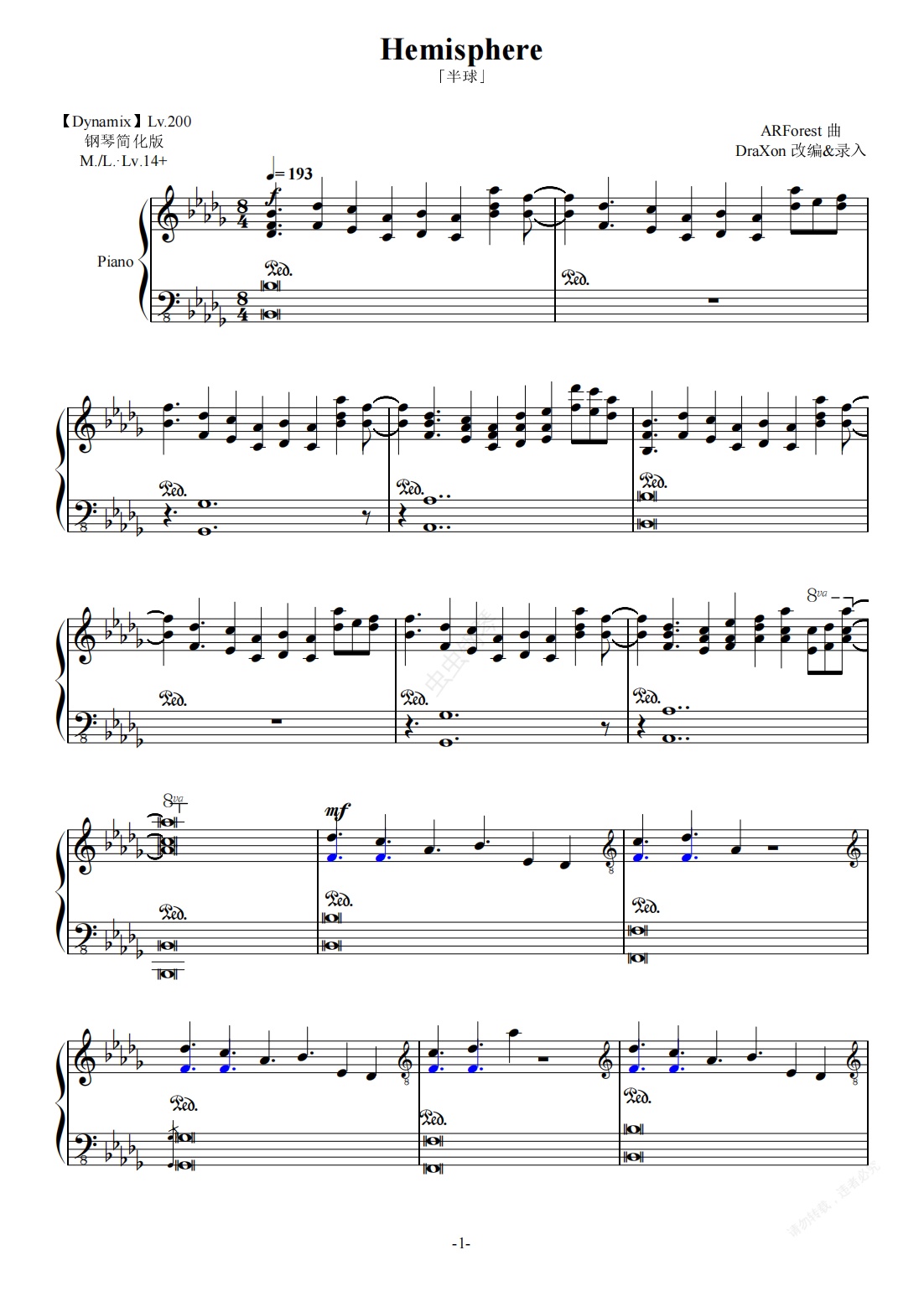 钢琴谱:Hemisphere(半球,Giga难度,by ARForest in Dynamix & OverRapid)