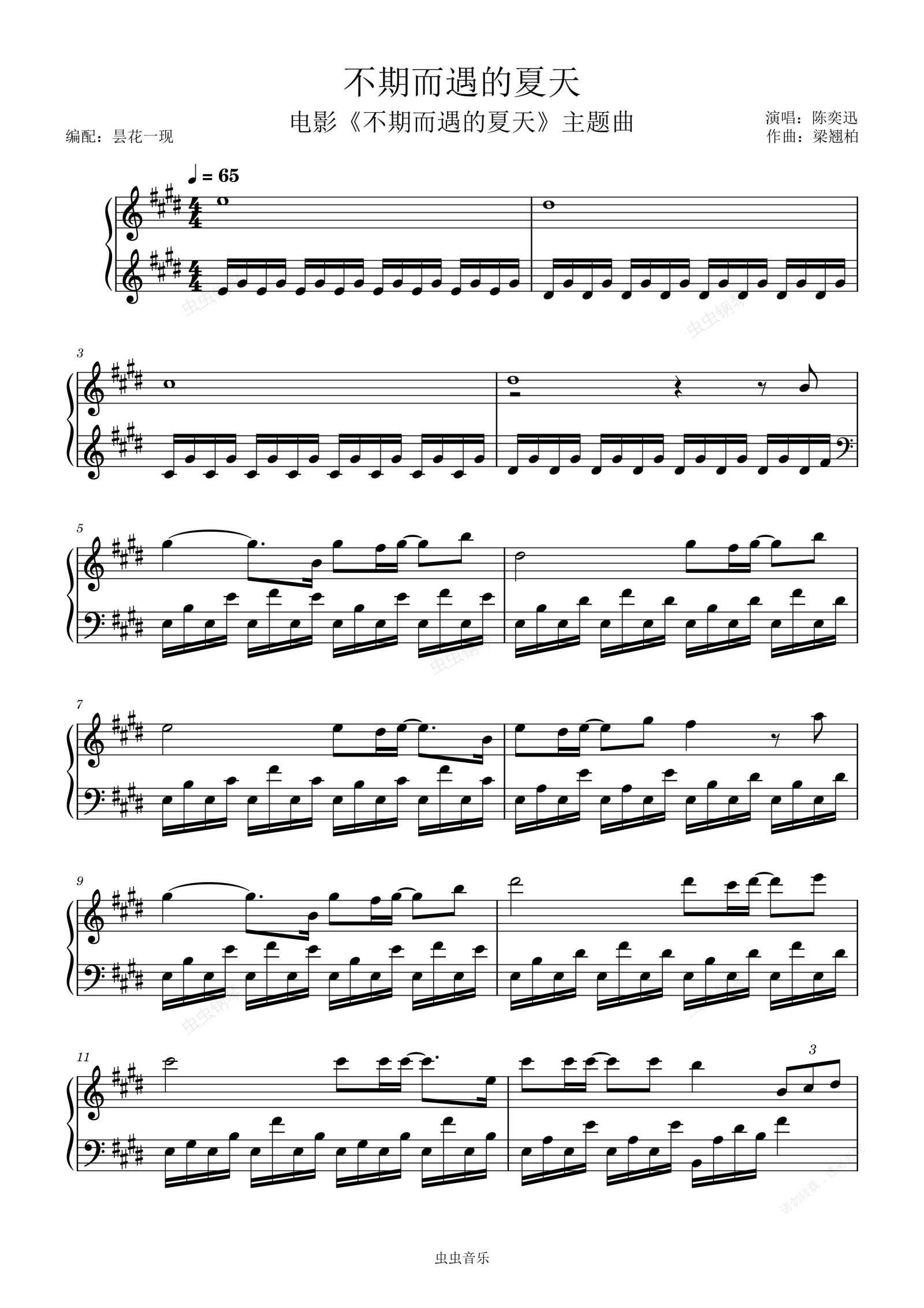 钢琴谱:不期而遇的夏天 陈奕迅演唱版本,电影《不期而遇的夏天》主题曲