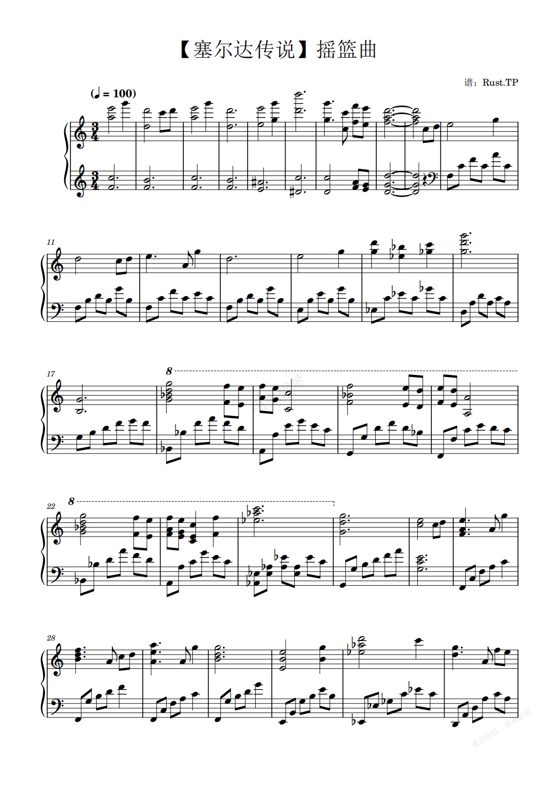钢琴谱:摇篮曲