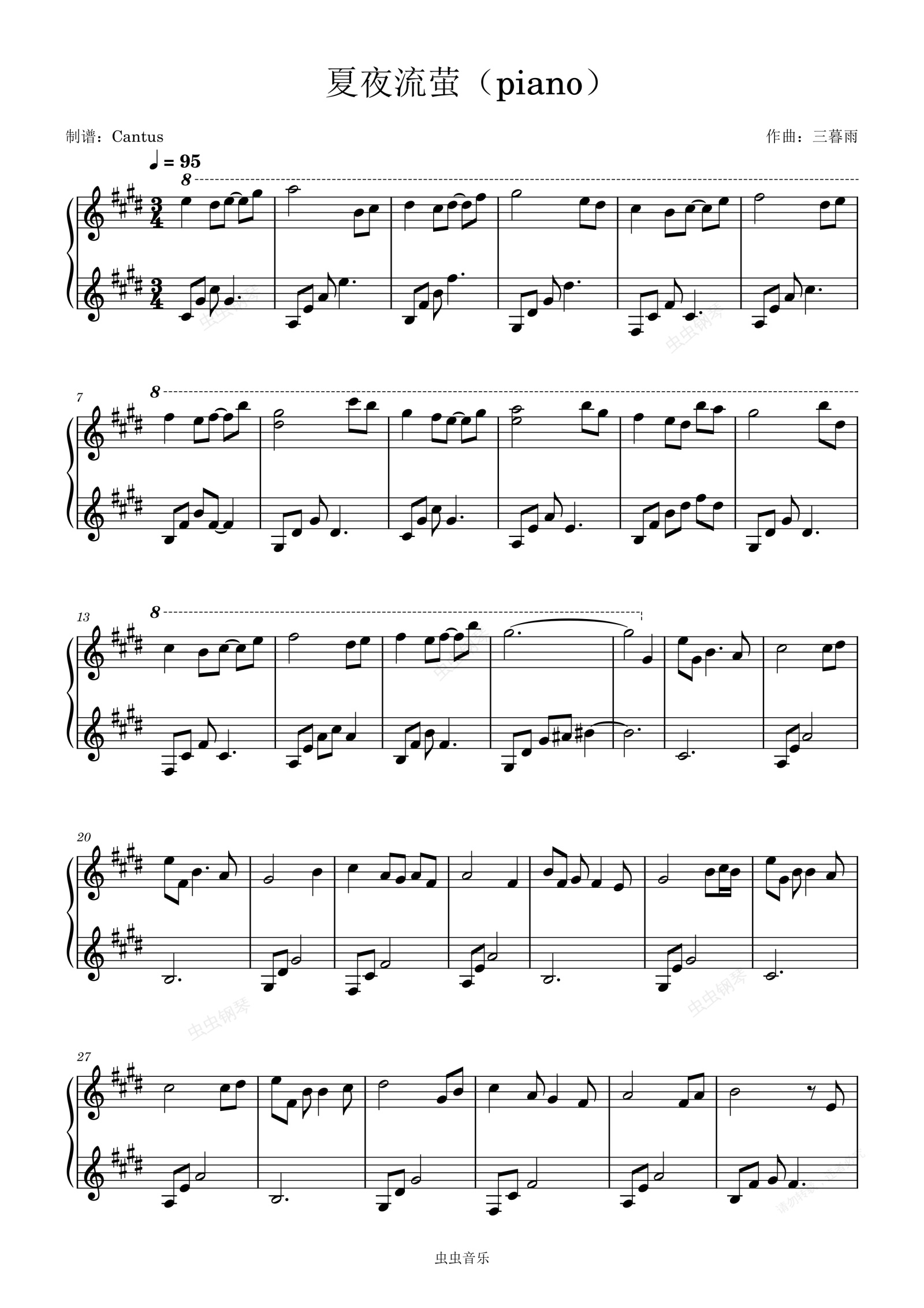 钢琴谱:夏夜流萤(piano)-三暮雨