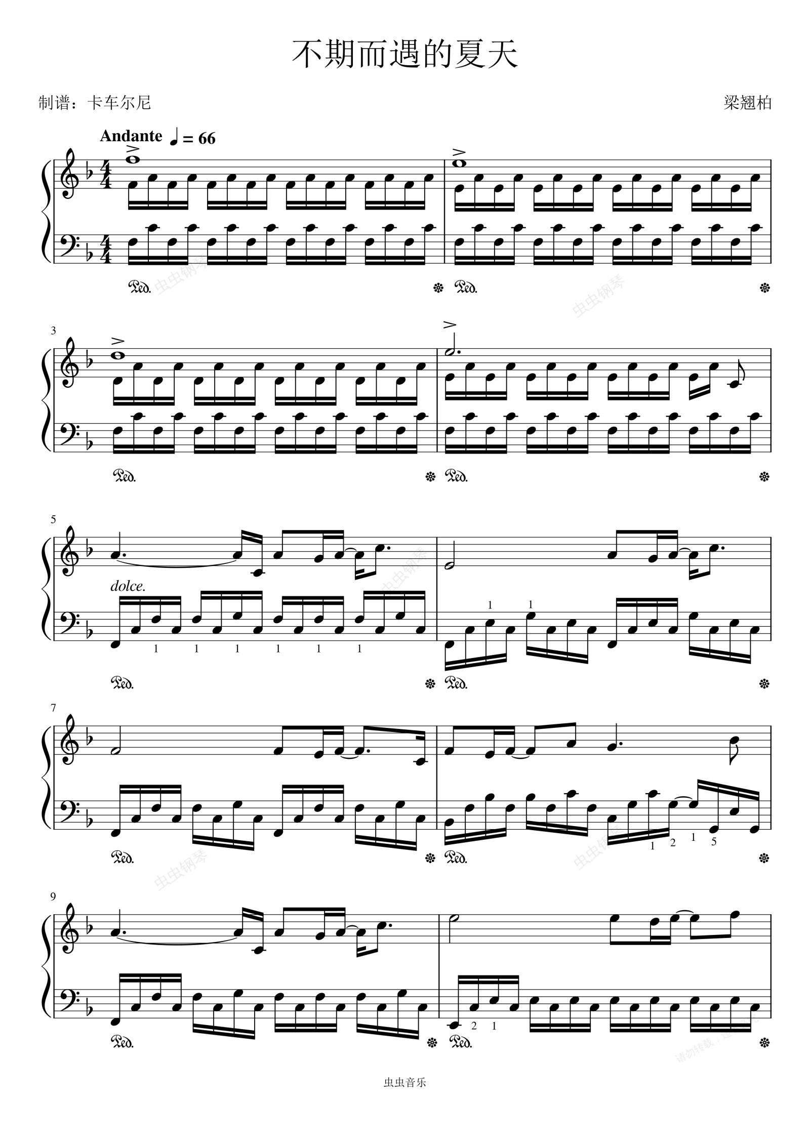 钢琴谱:不期而遇的夏天 F调少升降号,简单易上手