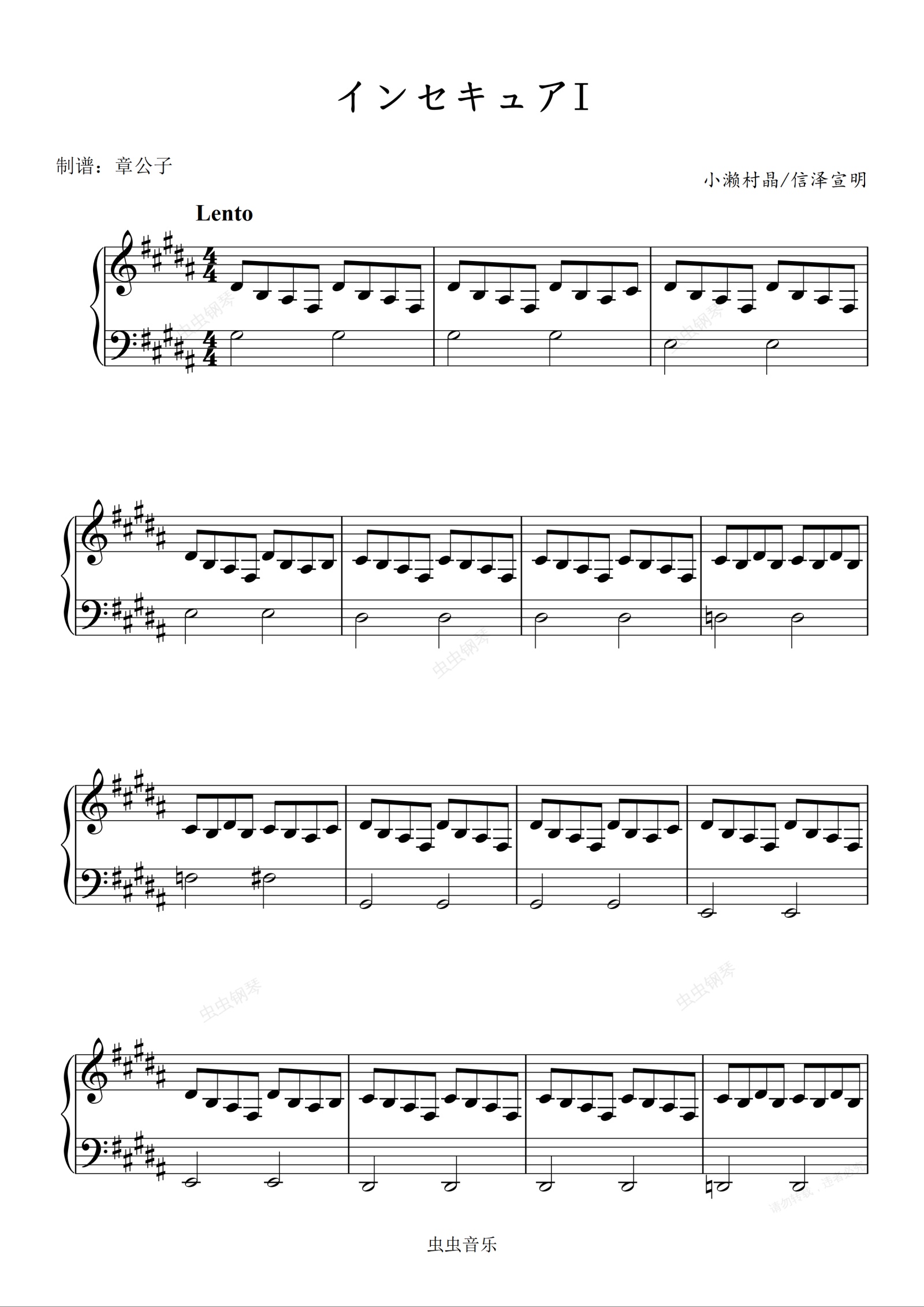 钢琴谱:インセキュアI(中学圣日记ost)独奏谱