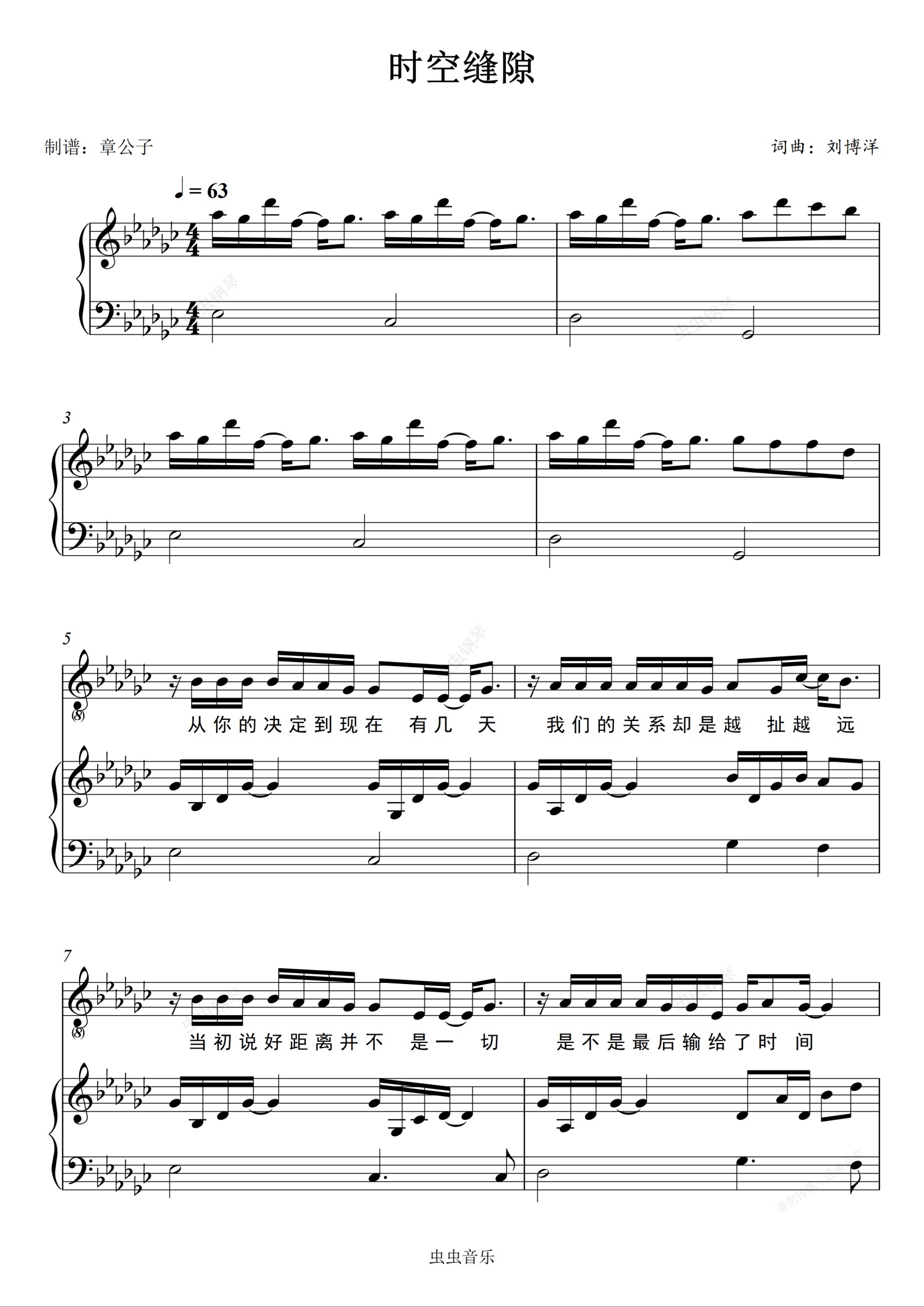 钢琴谱:《时空缝隙》(苏星婕) 弹唱(伴奏)谱