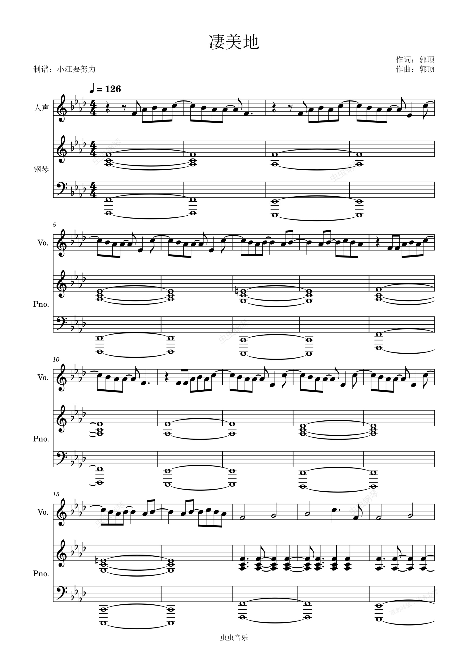 钢琴谱:凄美地-郭顶Ab原调钢琴谱