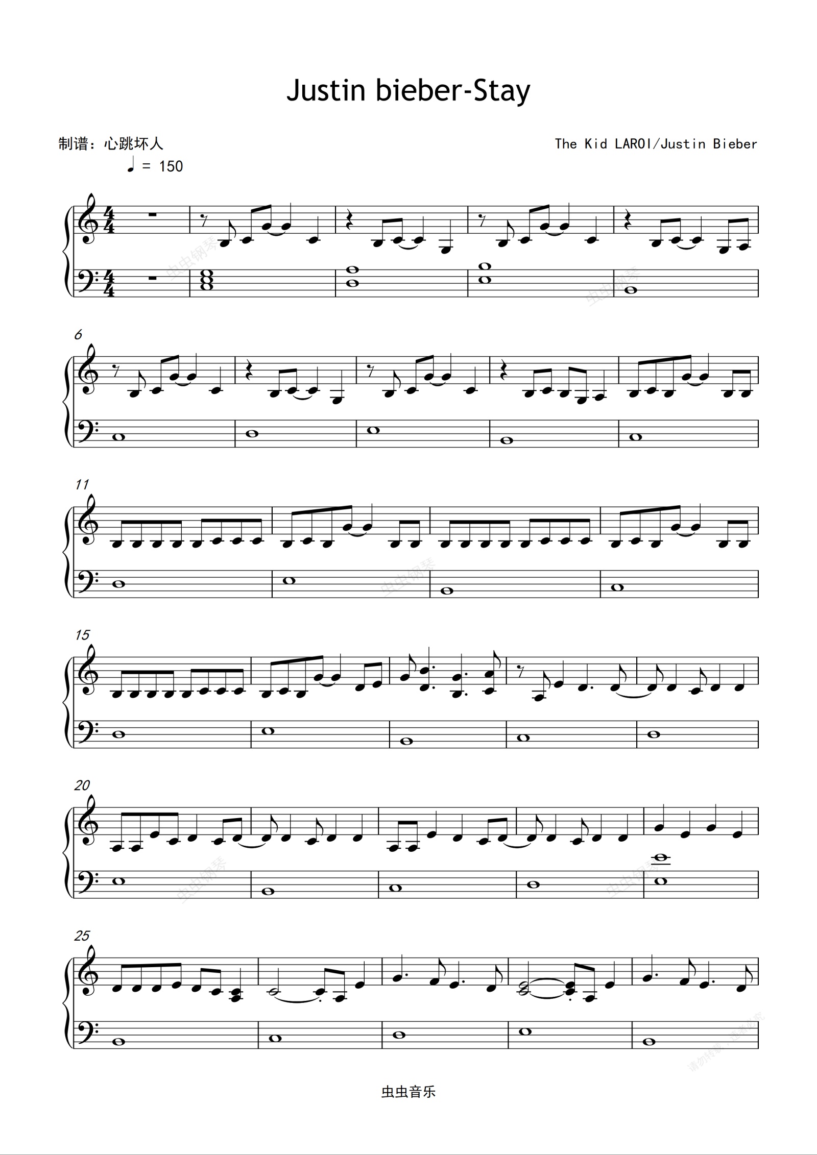 钢琴谱:STAY-The Kid LAROI / Justin Bieber【C调】