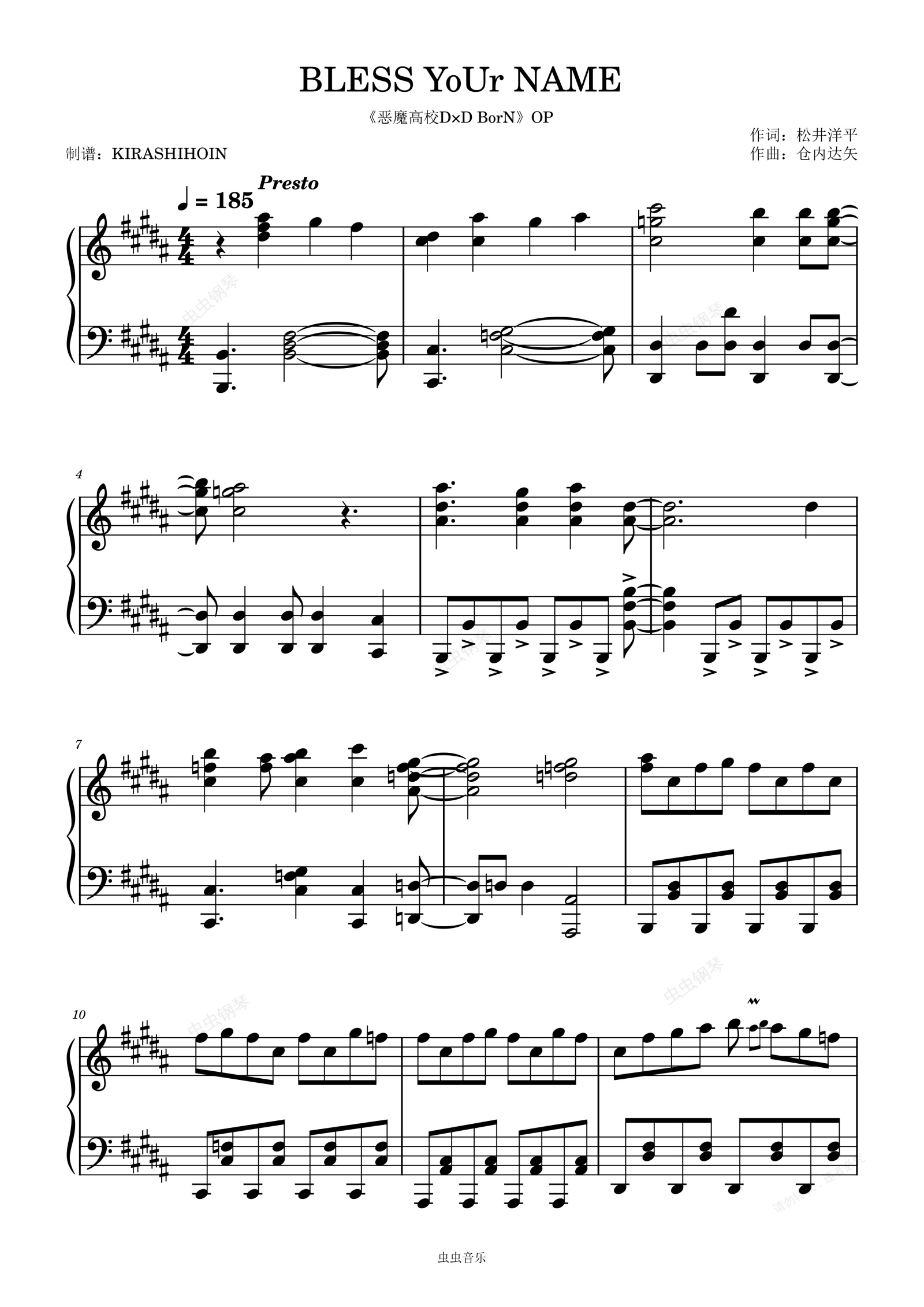 钢琴谱:BLESS YoUr NAME(《恶魔高校D×D BorN》OP/片头曲)- ChouCho
