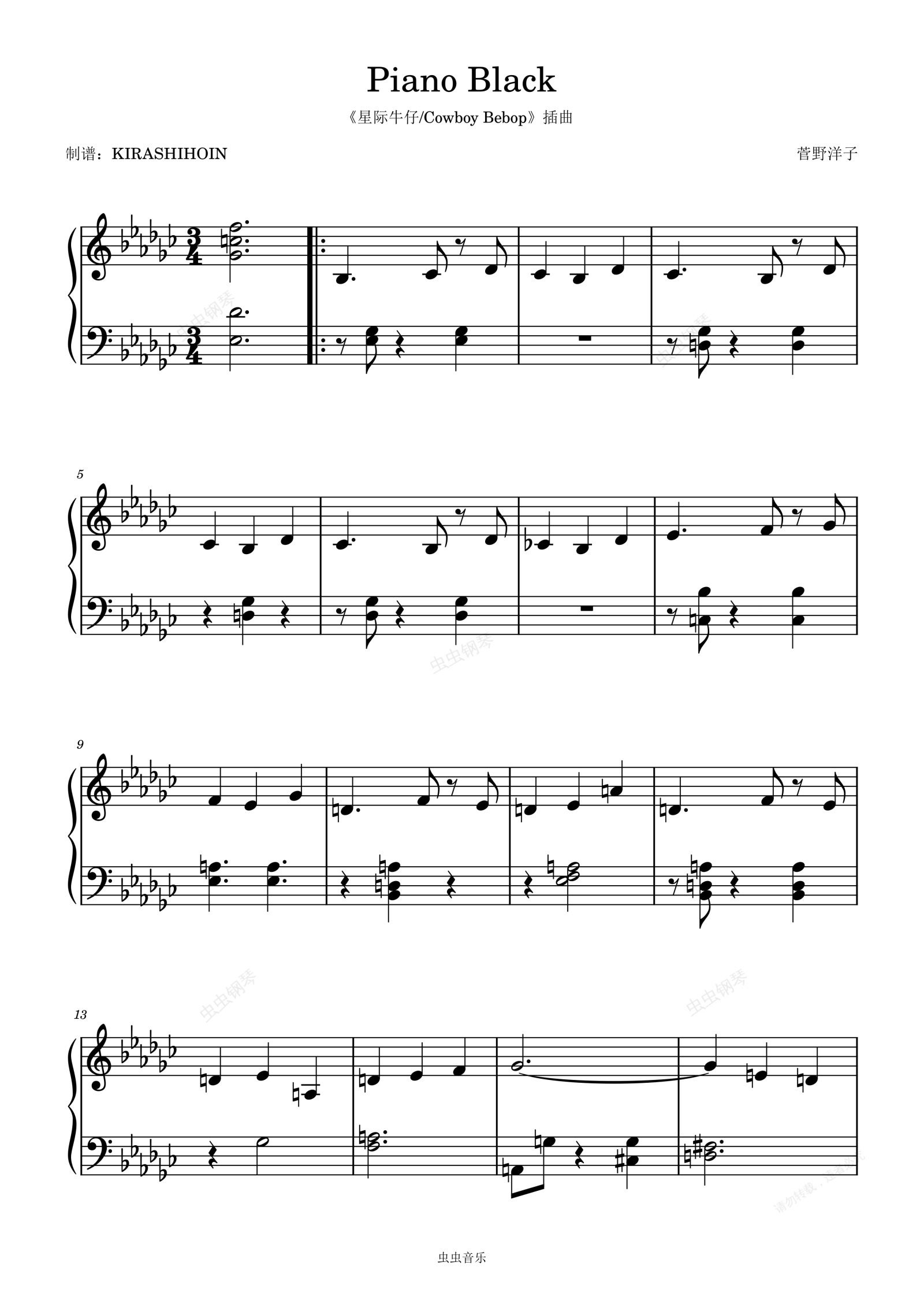 钢琴谱:Piano Black(《星际牛仔/Cowboy Bebop》插曲)- 菅野洋子