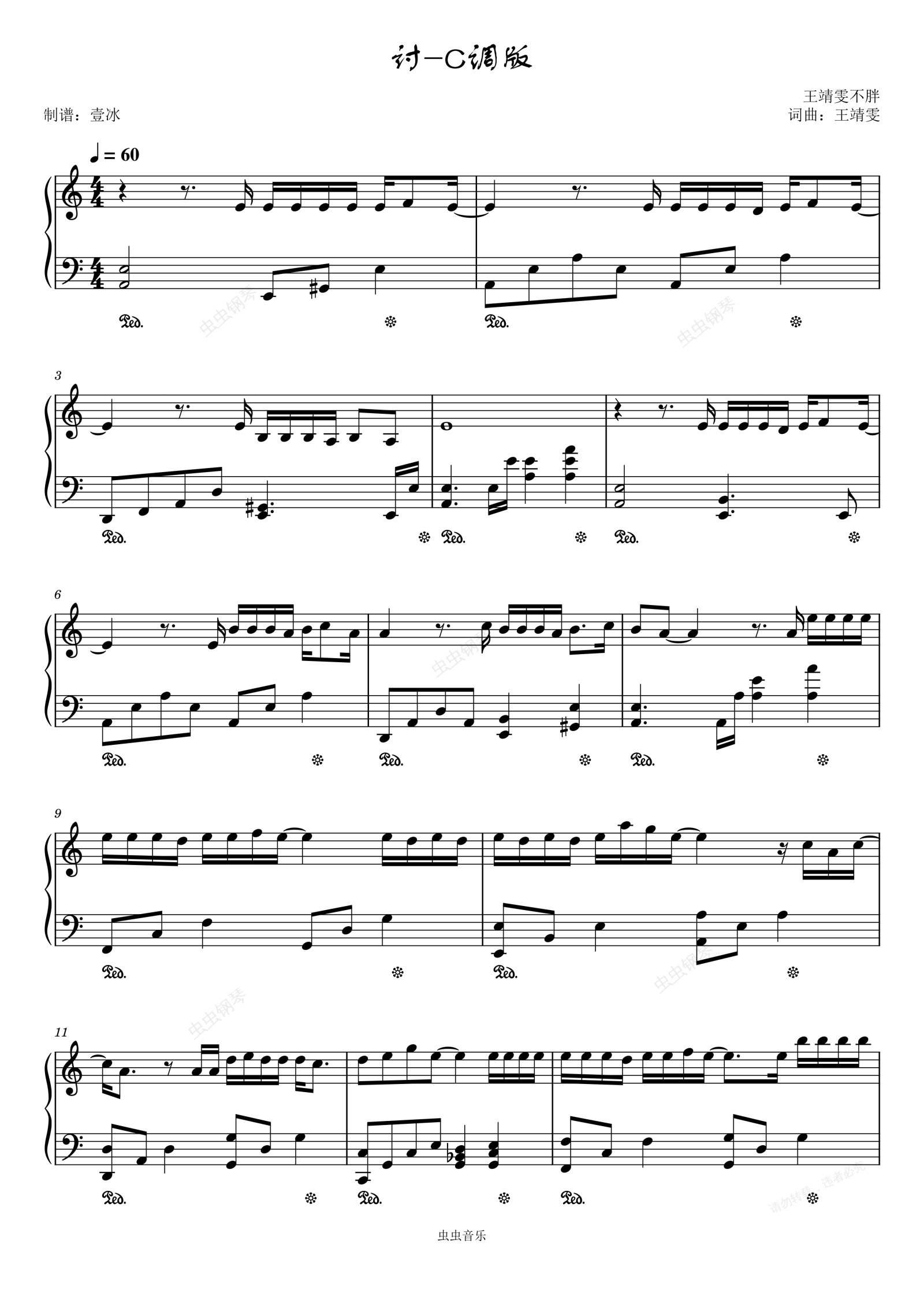 钢琴谱:讨//王靖雯不胖-C调版