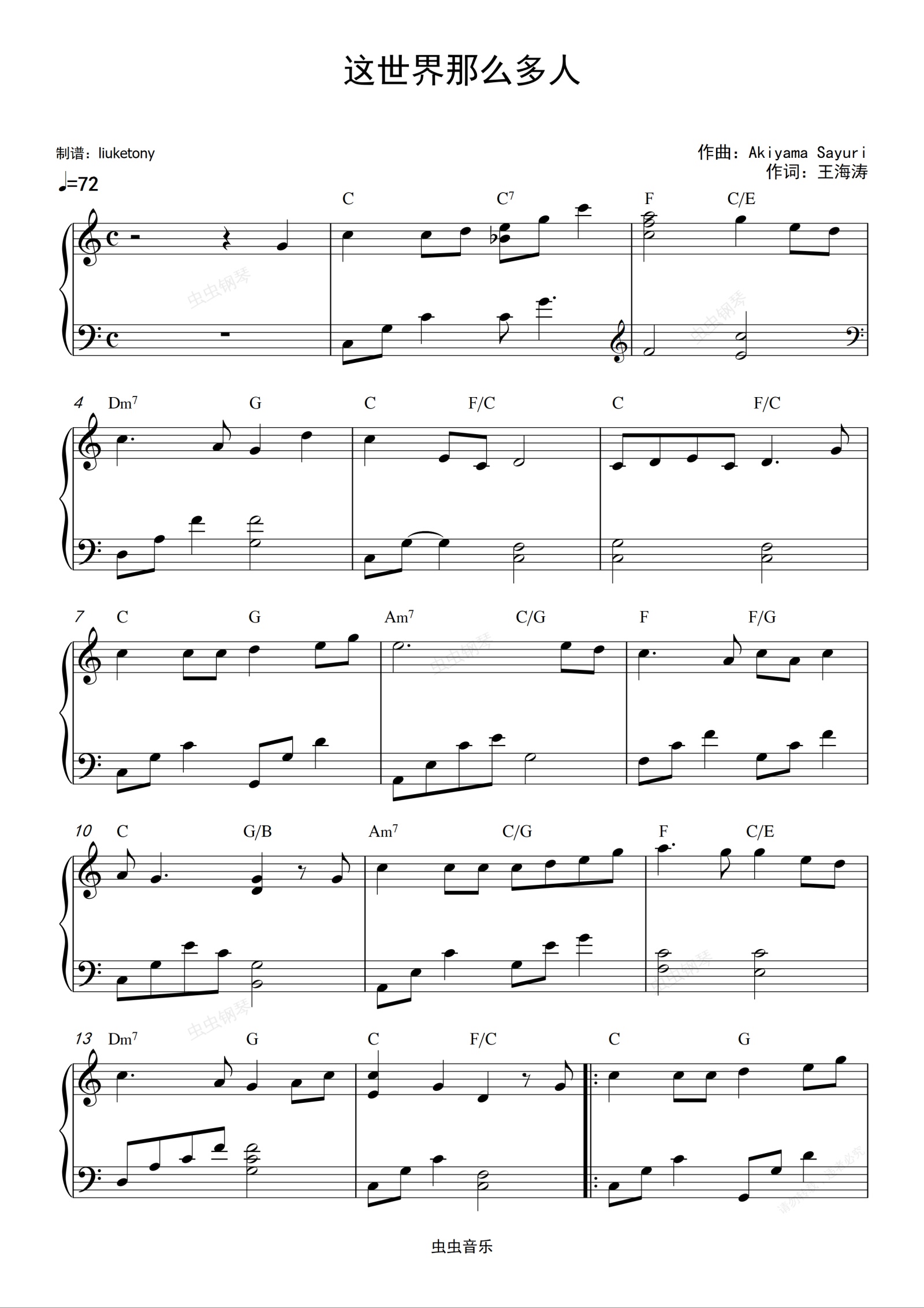 钢琴谱:这世界那么多人 钢琴独奏C调