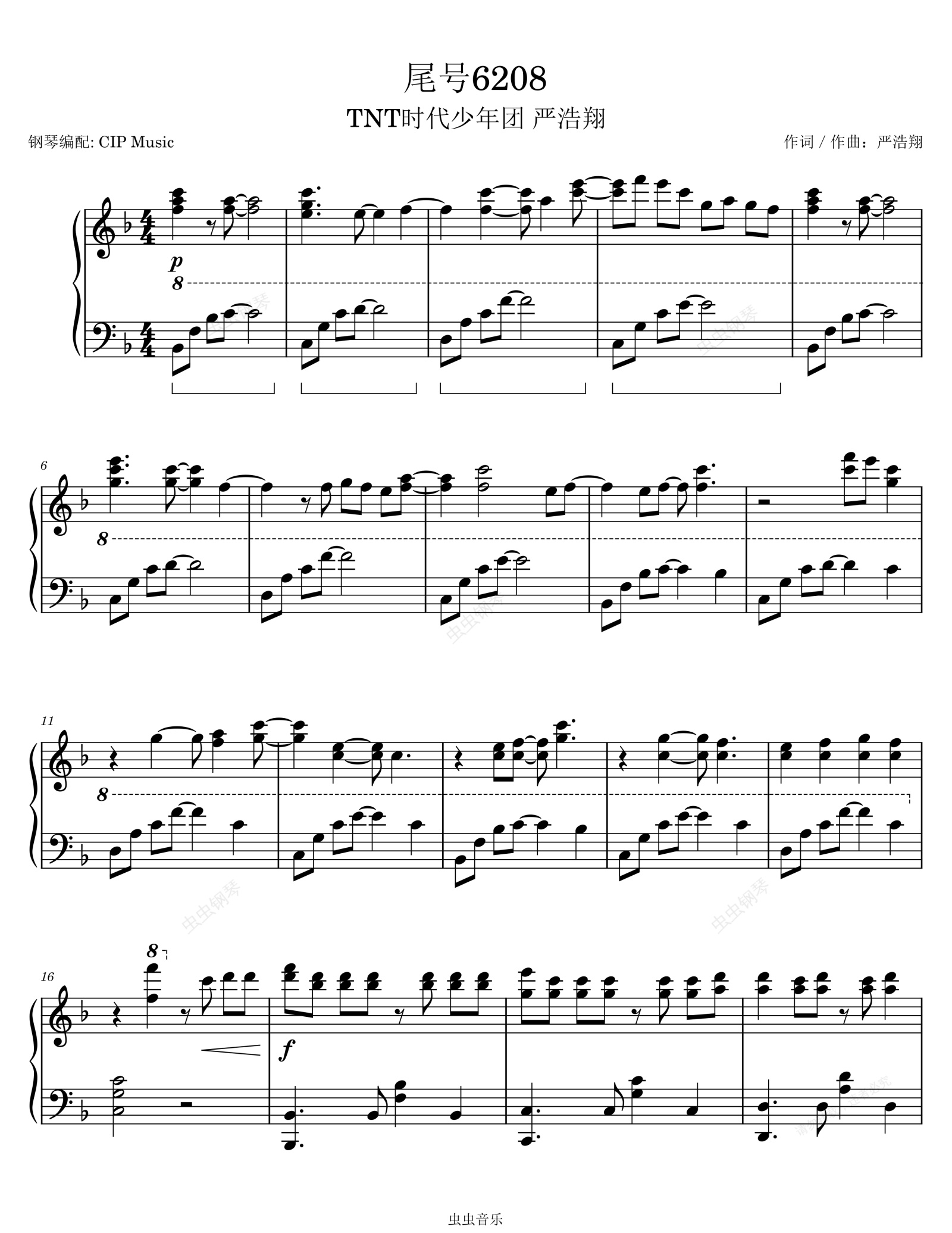 钢琴谱:《尾号6208》原调版