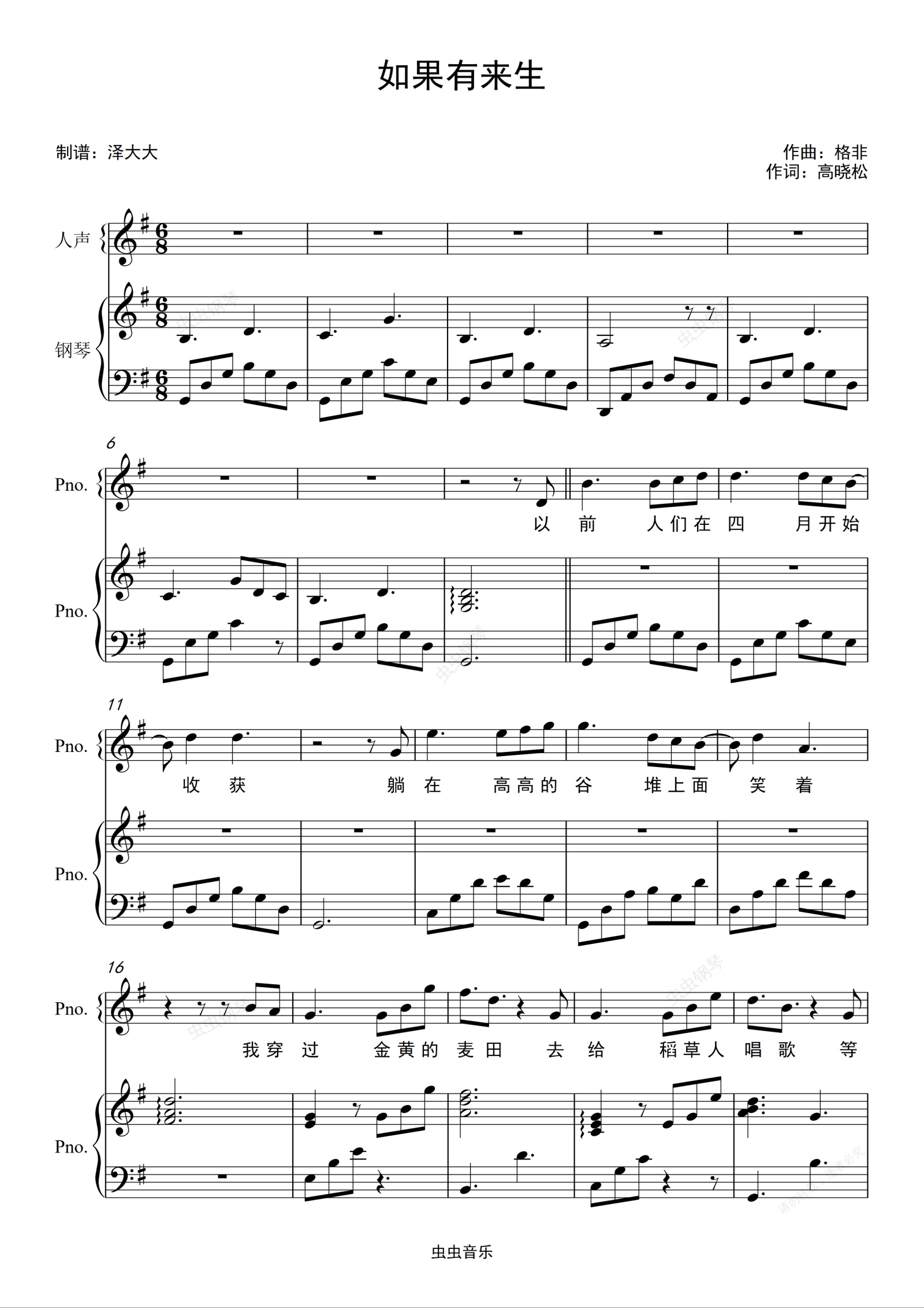 钢琴谱:如果有来生【完美弹唱附词】泽大大 谭维维