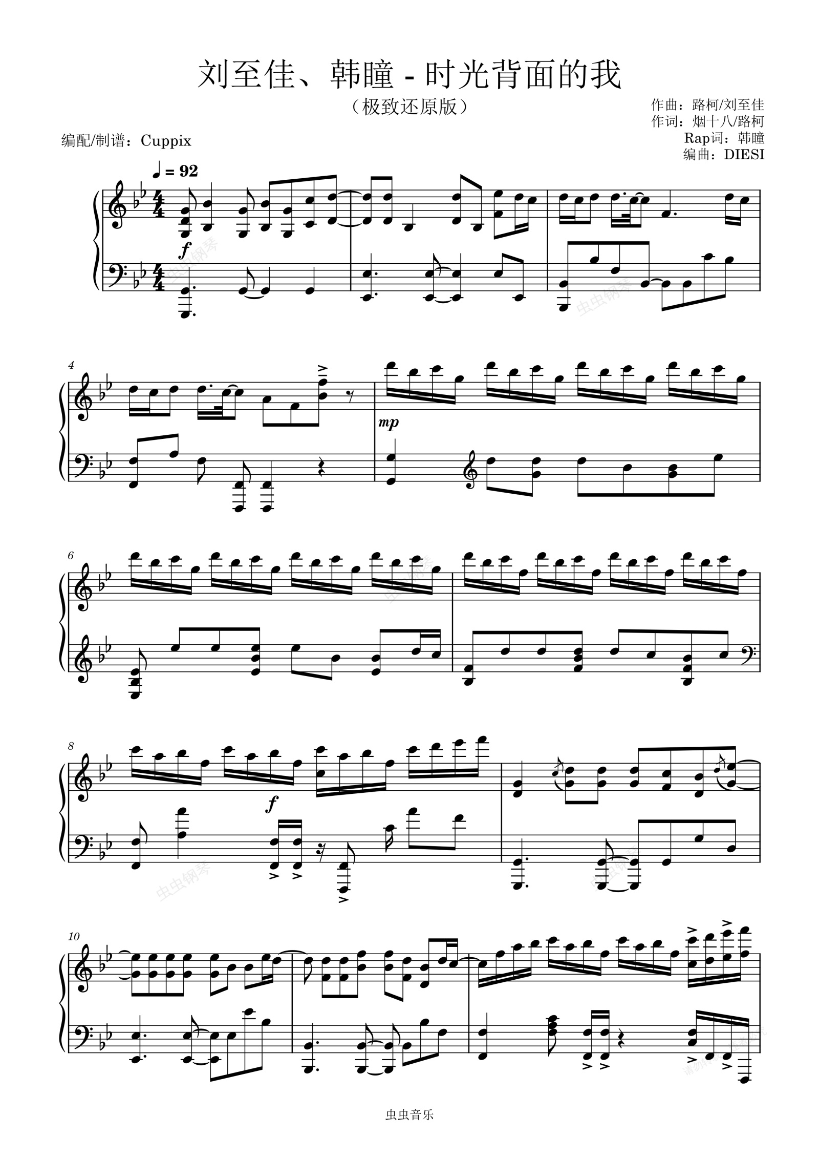钢琴谱:《时光背面的我》Cuppix编配-极致还原(刘至佳、韩瞳)