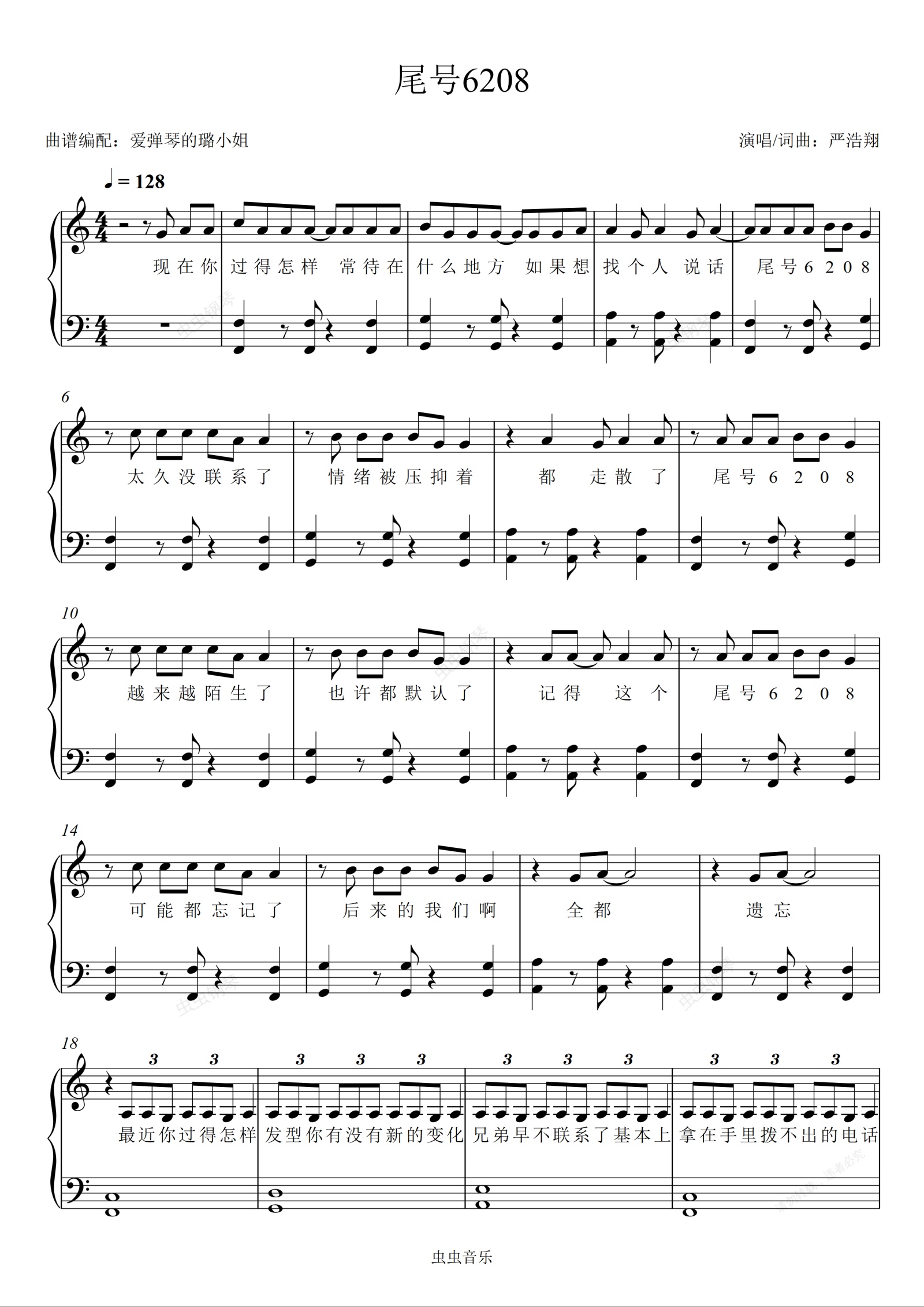钢琴谱:尾号6208