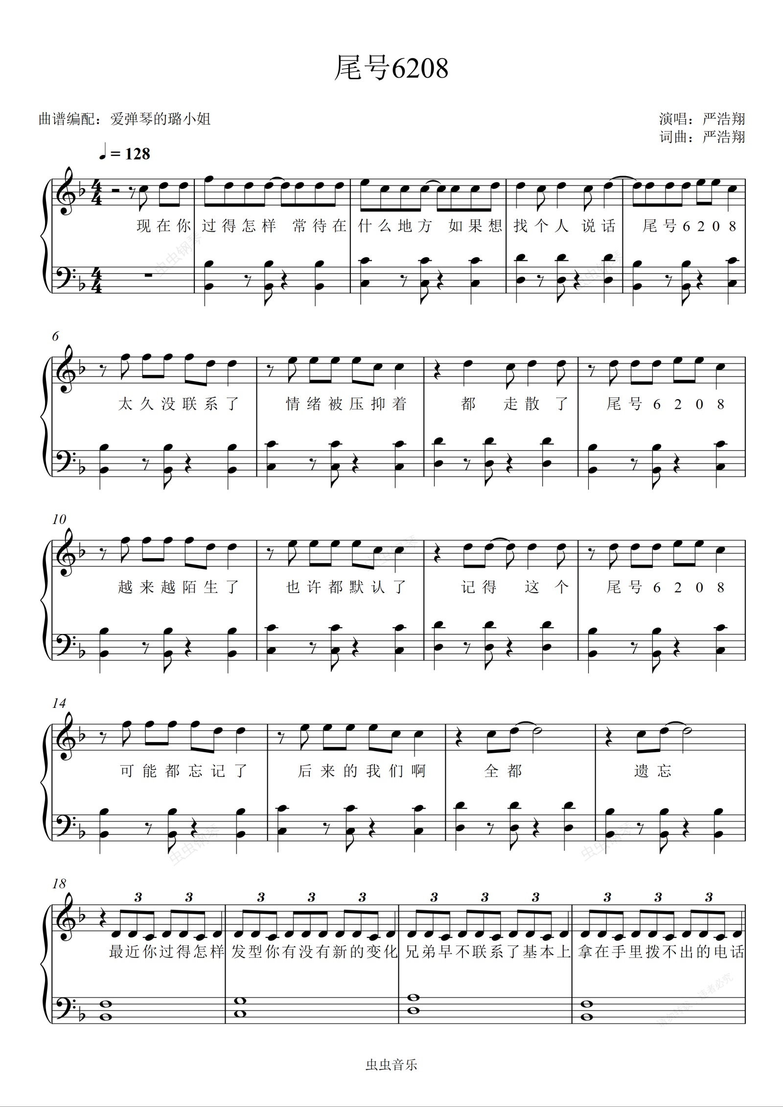 钢琴谱:尾号6208