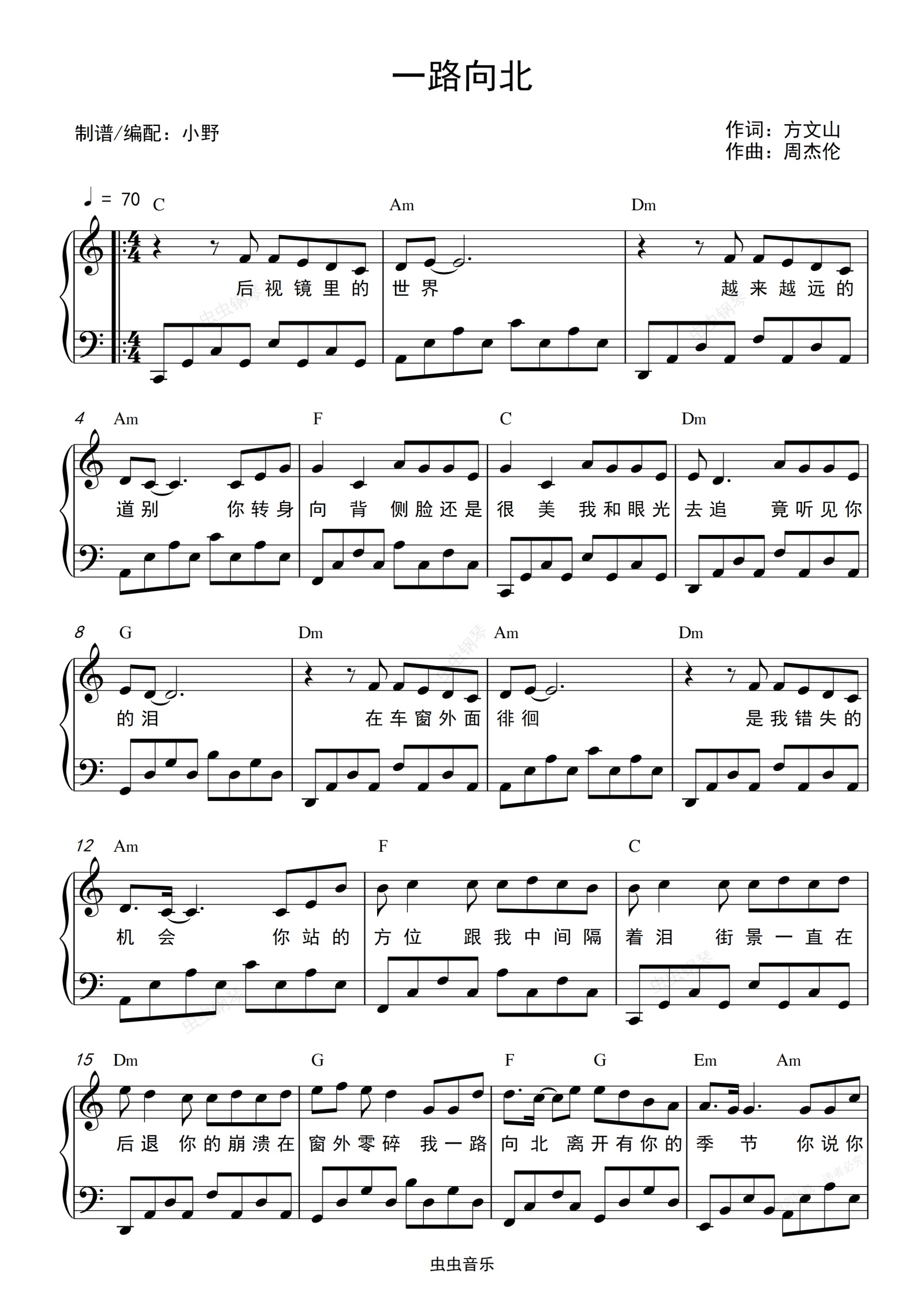 钢琴谱:一路向北