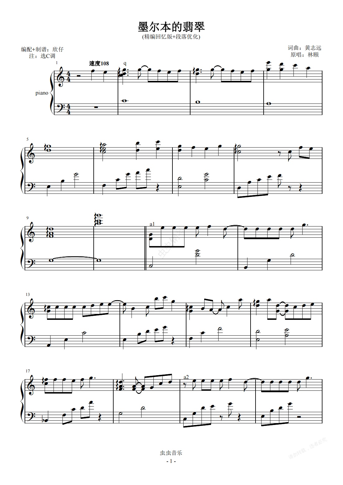 钢琴谱:林颐-C《墨尔本的翡翠》(精编回忆版+段落优化)