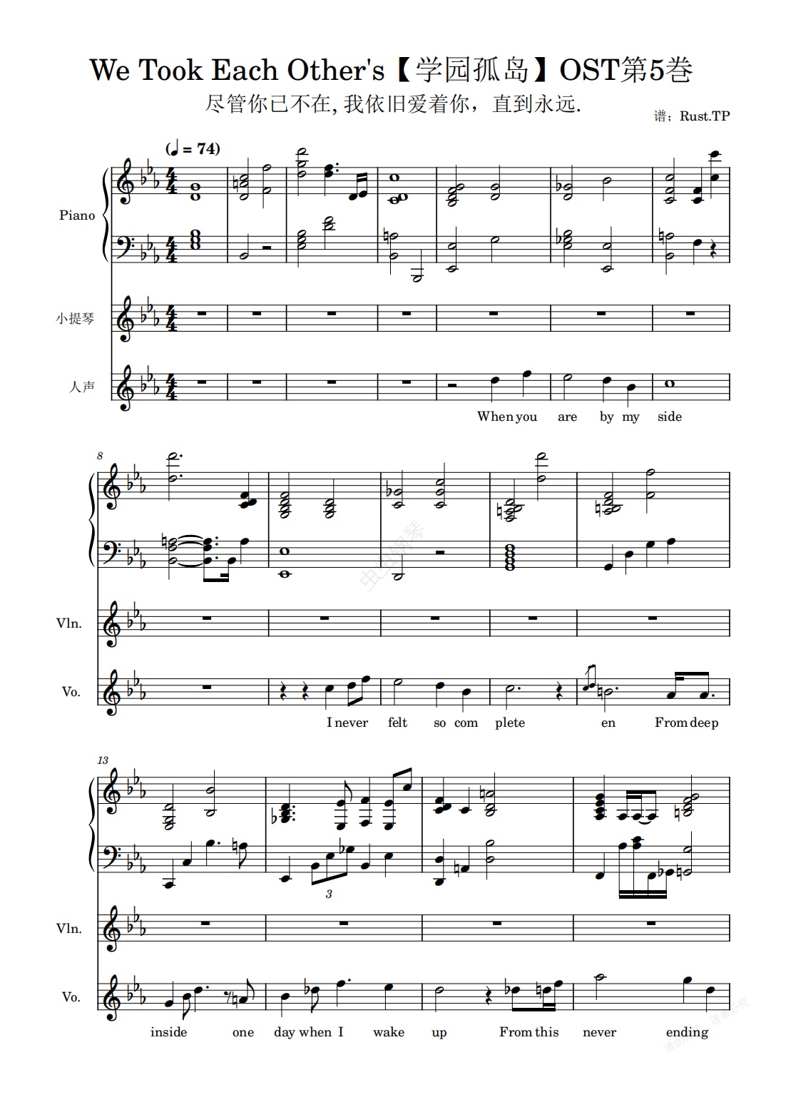 钢琴谱:we took each other's hand【学园孤岛】ost第五卷