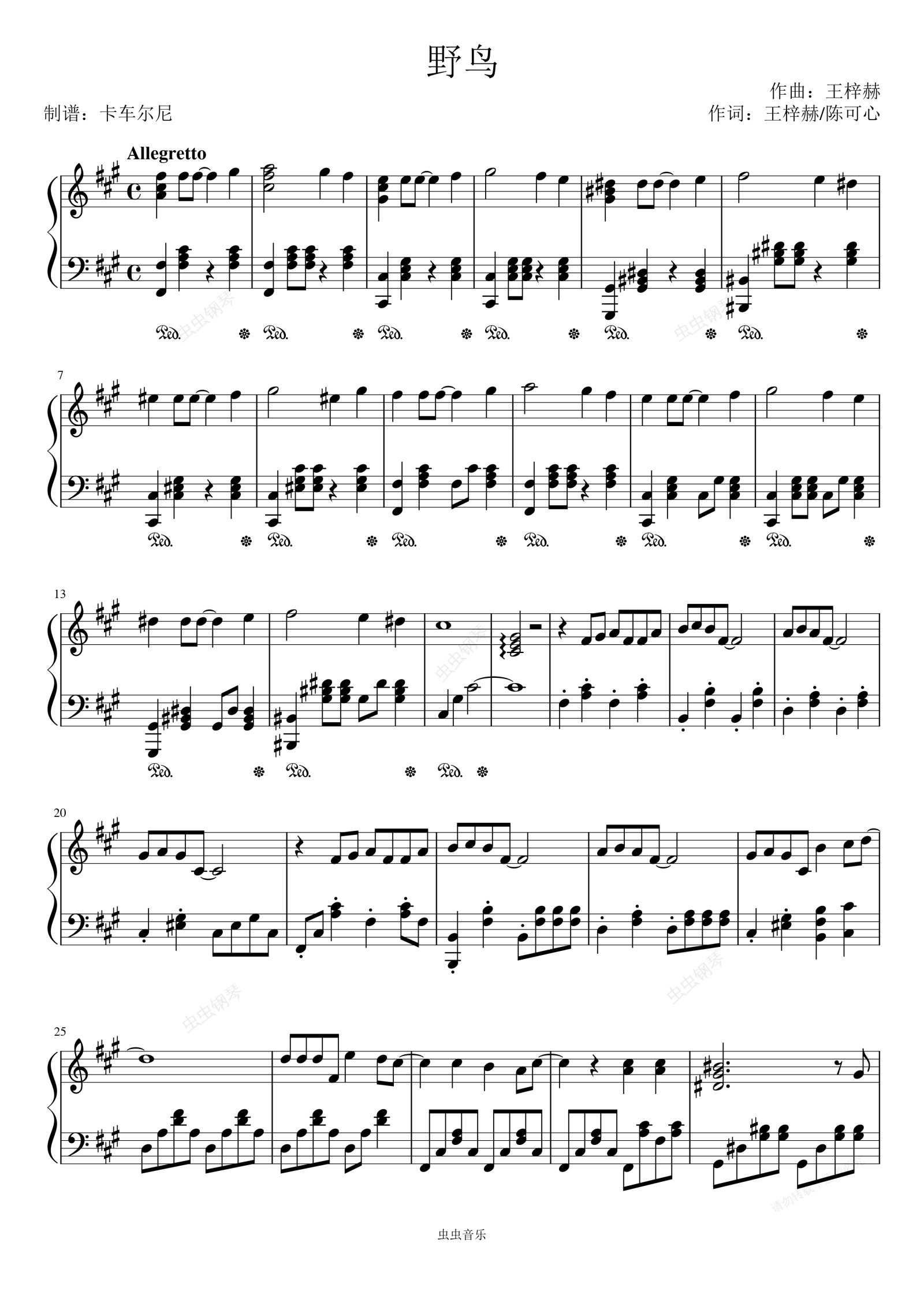 钢琴谱:《野鸟》电视剧《乔家的儿女》插曲